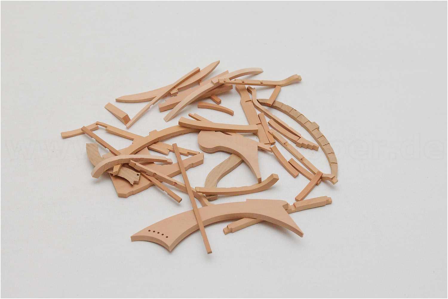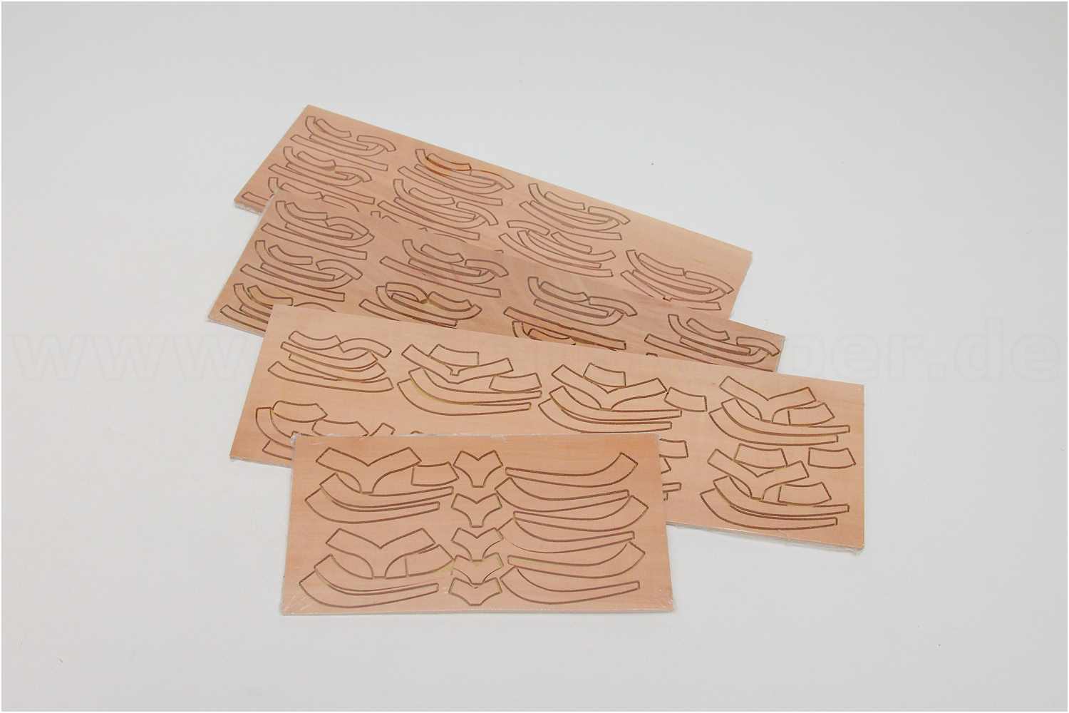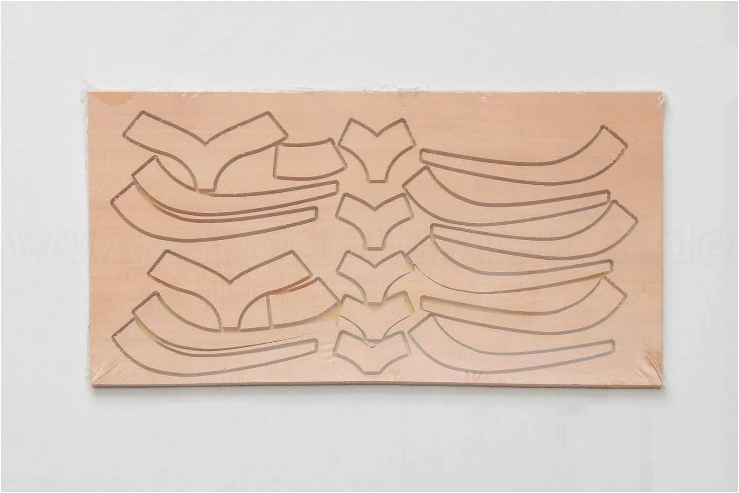 • diverse Holzplatten mir gefrästen Einzelteilen für die Spanten