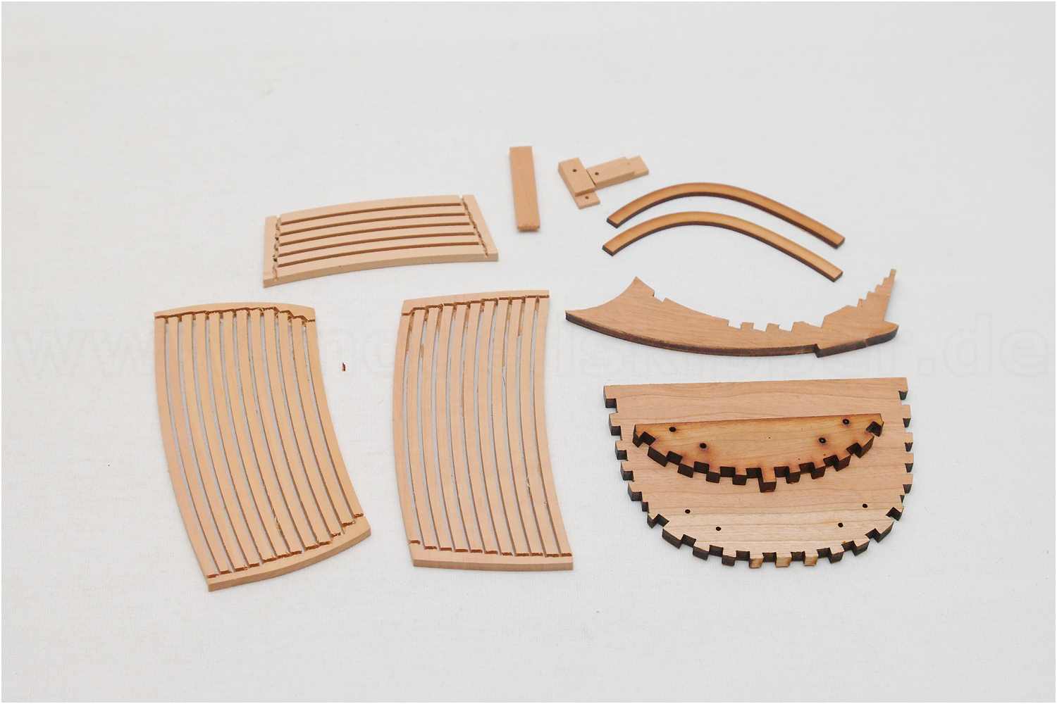 • exakt gefräste Spantteile ersparen einiges an Sägearbeiten und mit dem Echtholzdekor lässt sich ein sehr repräsentatives Modell erstellen