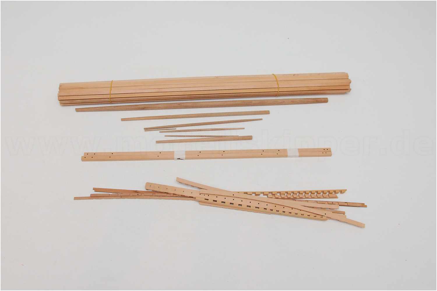 • für die Beplankung von Rumpf und Deck sind nur Leisten mit den Abmessung 5x2 m beigelegt, diesen reichen jedoch nicht für eine komplette Beplankung von Rumpf und Deck