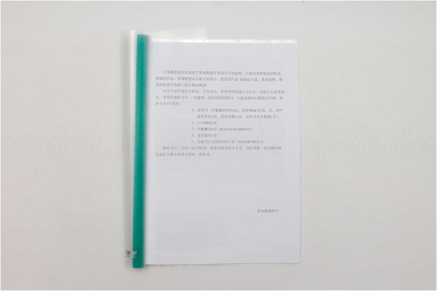 • 6 A4-Blätter für die Spanteinzelteile und zusätzlicher Seitenriss