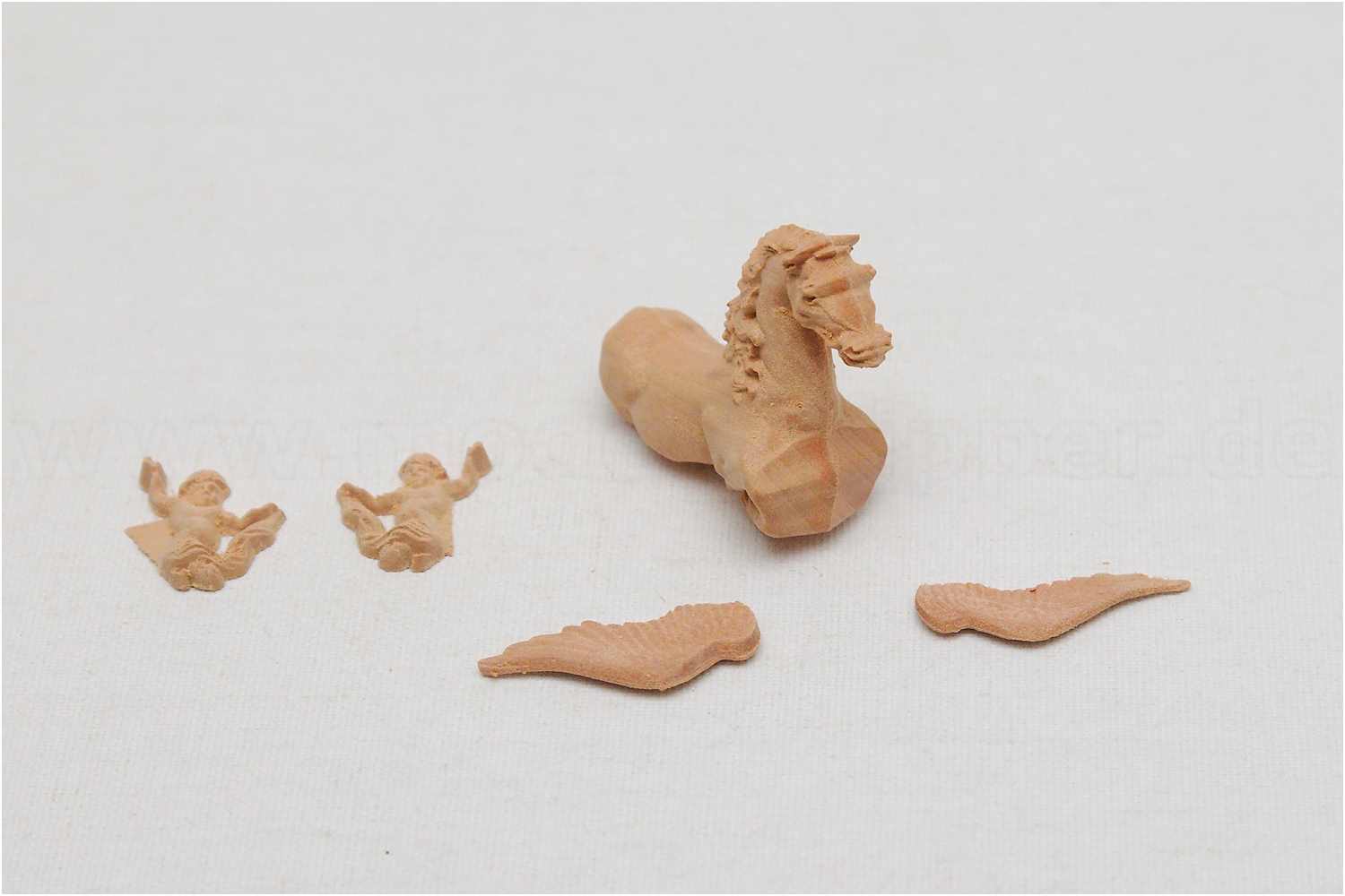 • alle Holzteile sind einheitlich aus Birnbaumholz gefertigt, es muss jedoch erwähnt werden, dass es verschiedene Bausatz-Varianten gibt, die unter den Bezeichnungen "Wood Carving" und "Pear Wood Carving" angeboten werden