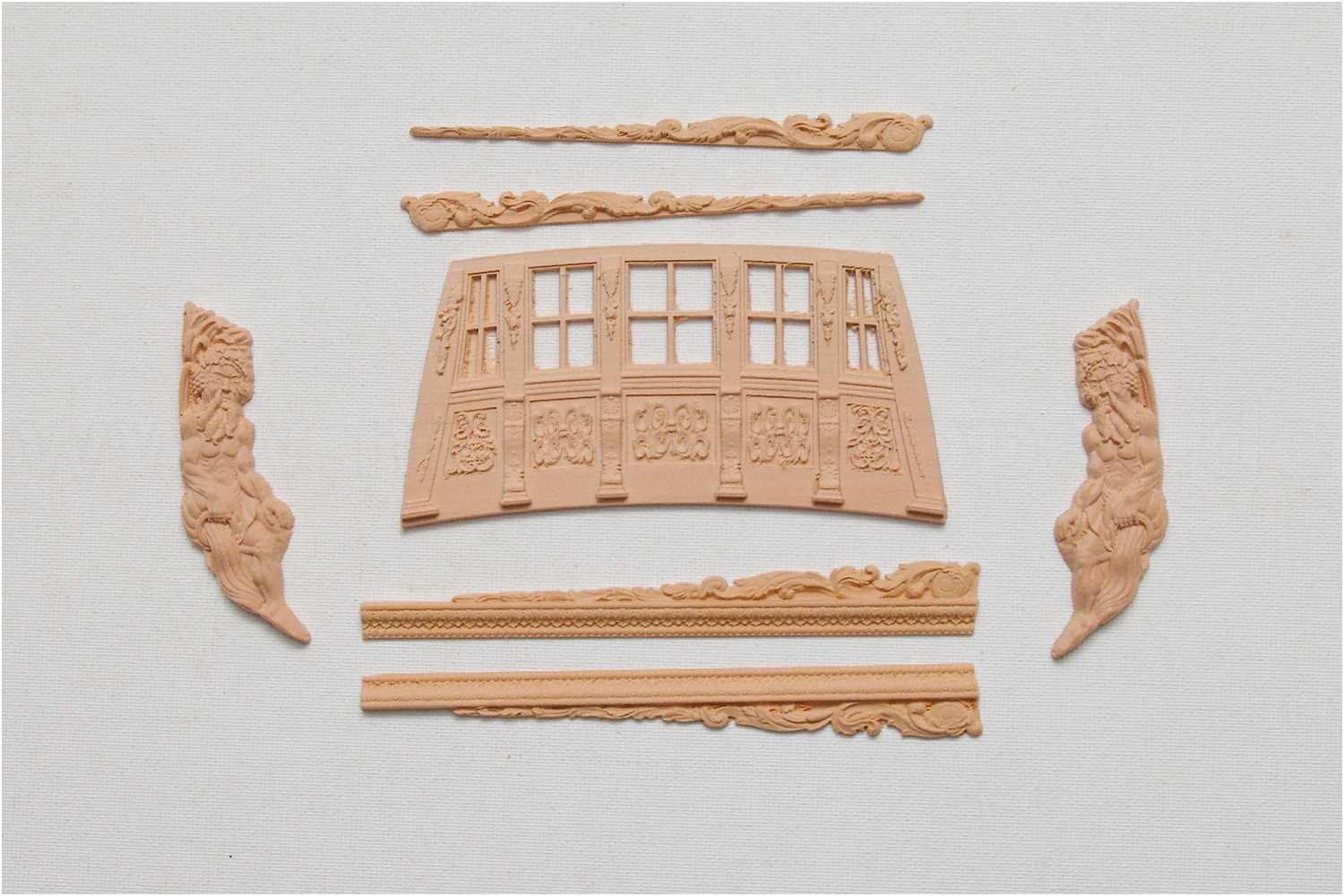 Für die Fredericus habe ich mir von einem, auf diese Art von Modelldetails spezialisierten, ukrainischen Modellbauer ausgezeichnete Schnitzereien anfertigen lassen und mit Dekor von chinesischen Anbietern in vergleichbarer Qualität erweitert.