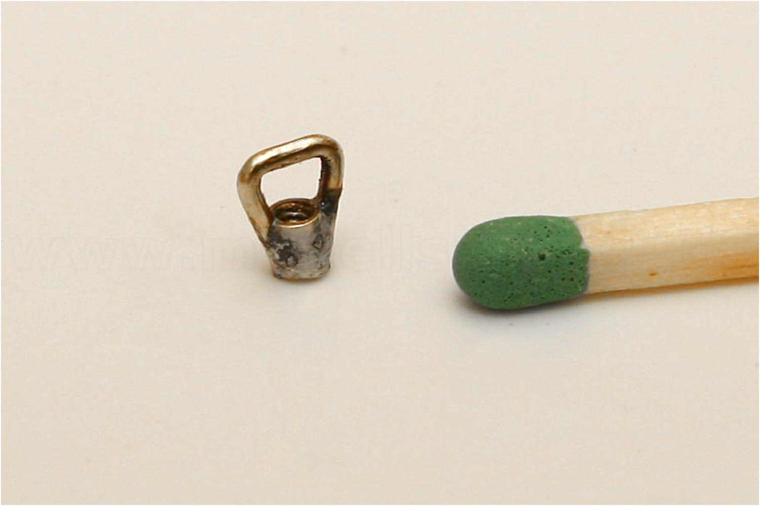 Der Sicherungsbügel wird durch einen beweglichen Schraubbolzen mit Bügelmutter fixiert. Diese Mutter hat ein M1,4-Gewinde und ist somit funktionstüchtig.