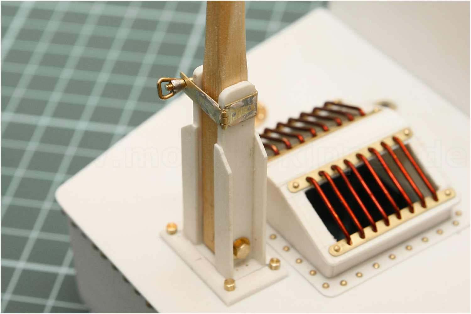 Bis jetzt habe ich noch nicht mal ein Handvoll Bilder von Schleppern dieser Art gefunden, die mit einem Mast ausgerüstet waren. Aber immerhin gibt es doch den ein oder anderen. Ich finde, ein schöner Holzmast hat was und deshalb habe ich mir einige Anregungen bei anderen Dampfschleppern geholt.