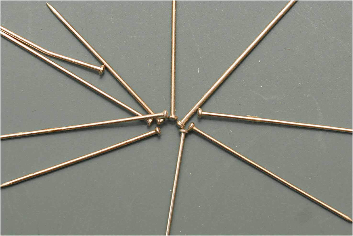 Die Nadelköpfe sind nicht immer ganz mittig auf den Nagelschaft, hatten teilweise einen unterschiedlichen Durchmesser und die Unterkante des Kopfes war nicht plan, sprich keine scharfe Aufsatzkante.