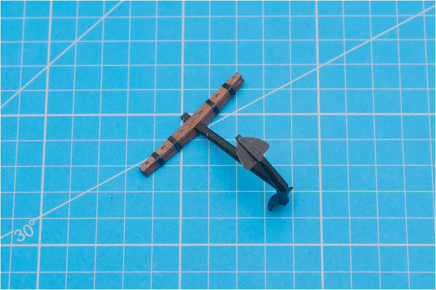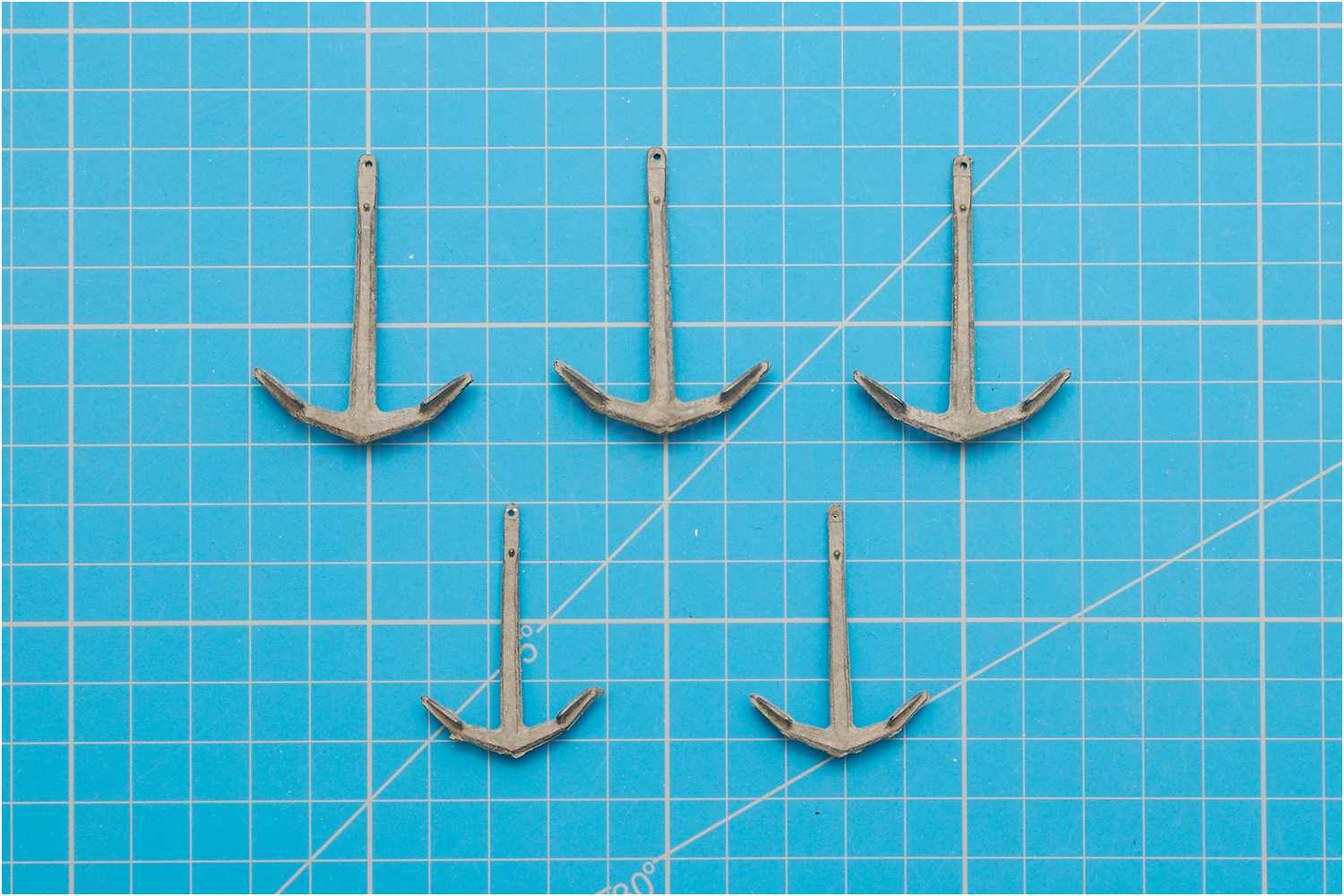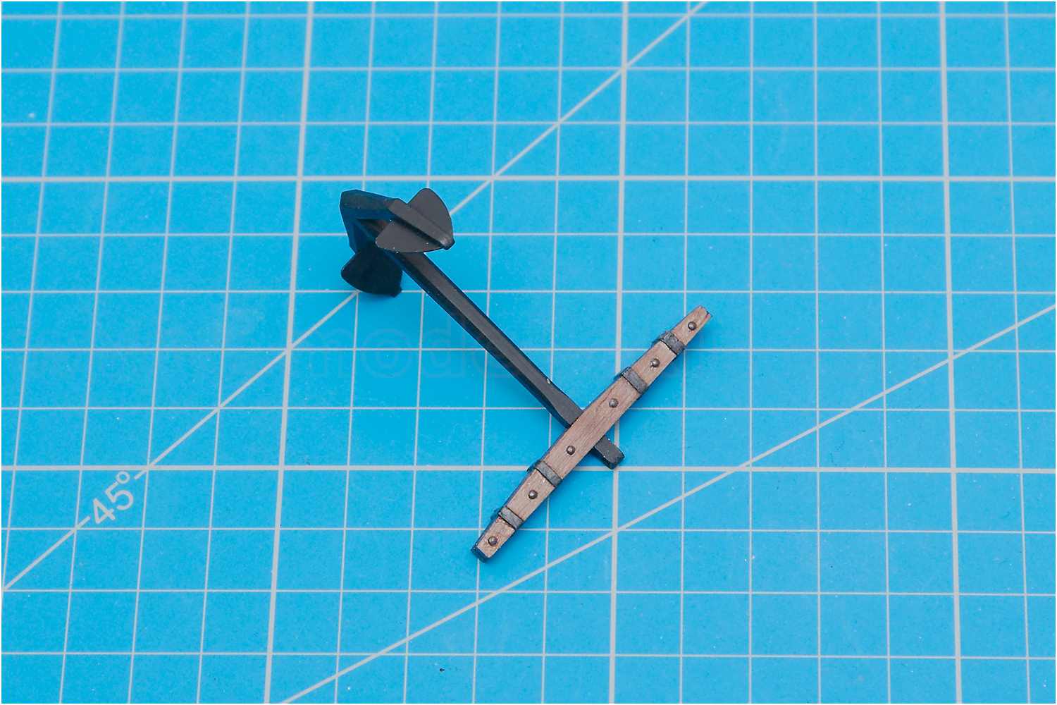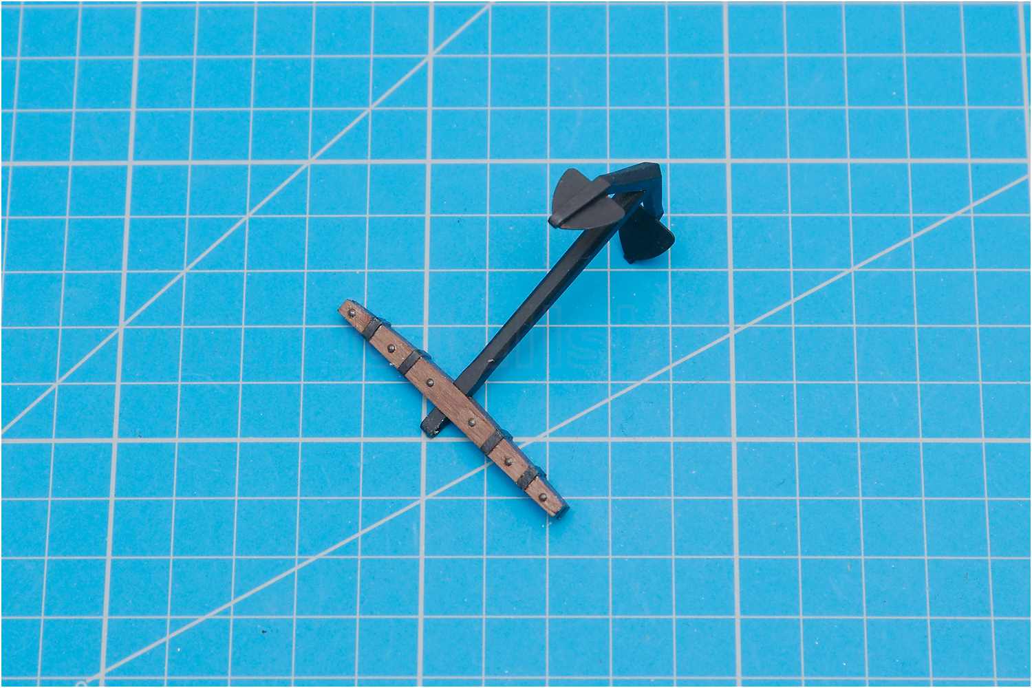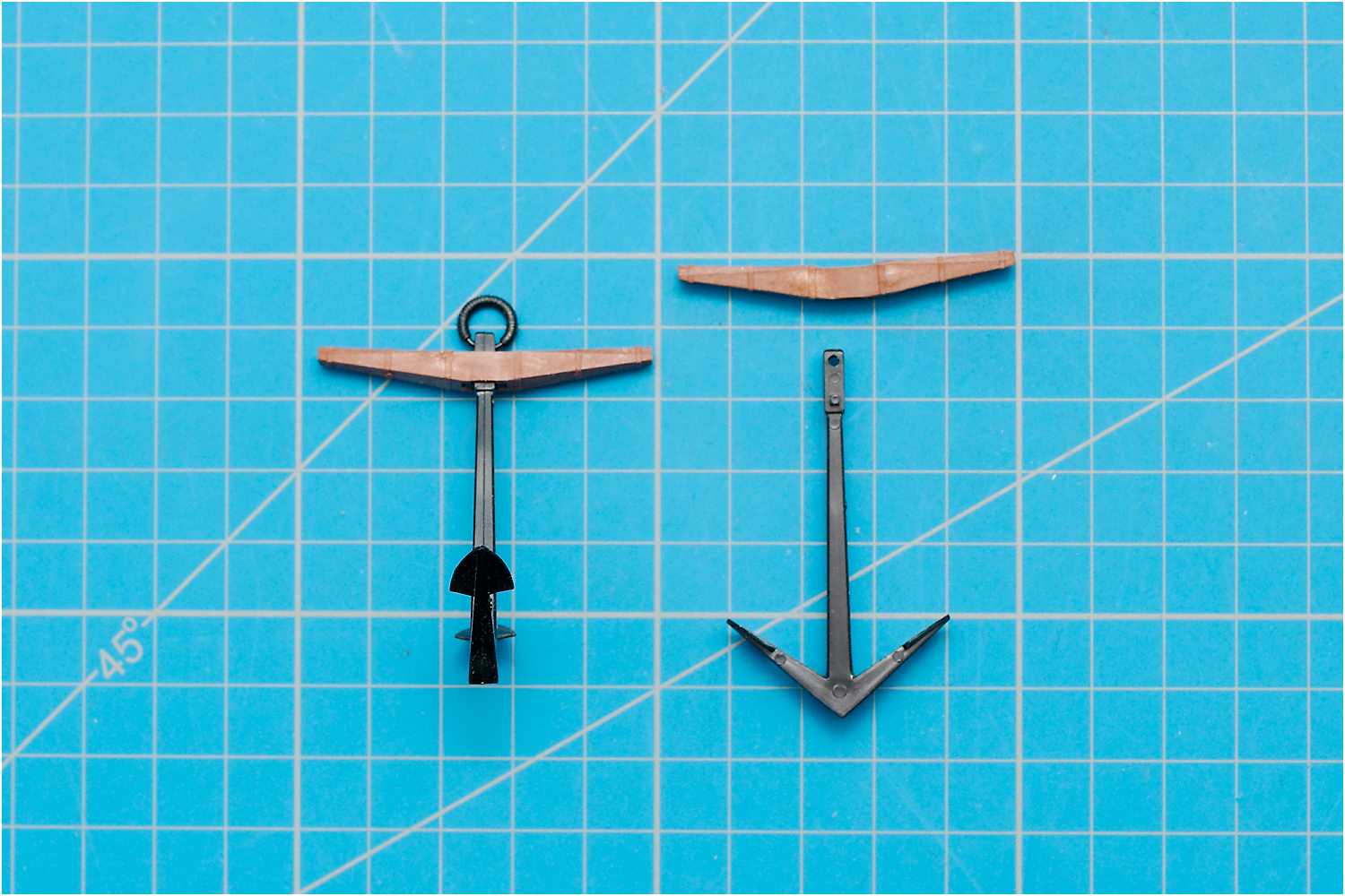 Die Anker des Bausatzes sind aus Kunststoff. Genau betrachtet und nach einigen Recherchen, habe ich ein Problem mit der Ankerform. Das spitze Flunkenkreuz gefällt mir nicht wirklich.