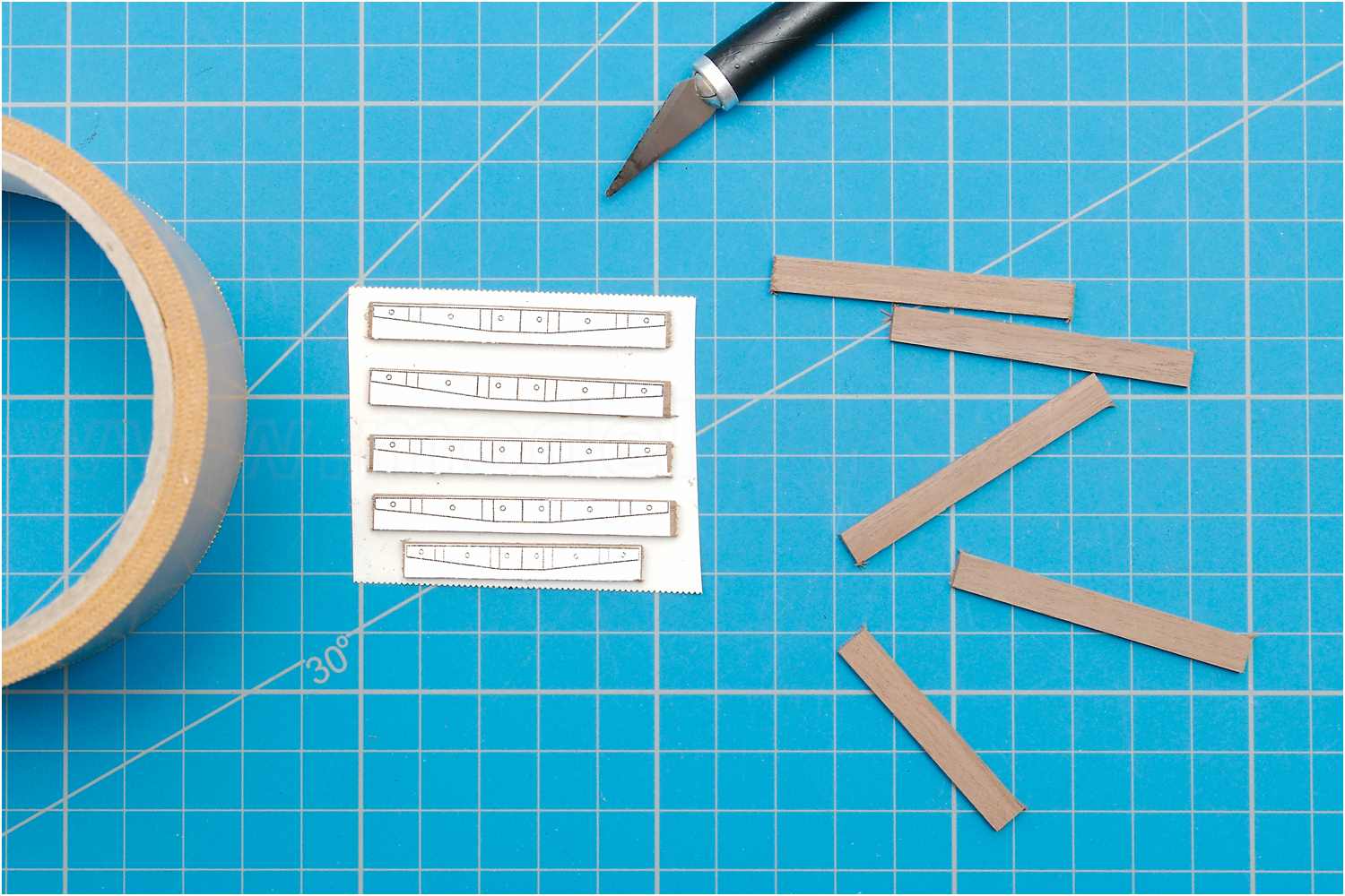 Die Unterseite wurde mit dem Tellerschleifer nach außen hin verjüngt, anschließend die beiden nun formidentischen Leisten wieder voneinander getrennt.