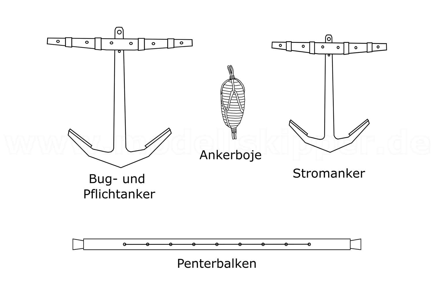 Da sich allerdings Bug- und Vertäuanker nur unwesentlich vom Pflichtanker unterscheiden, verwendet ich drei gleich große Anker.