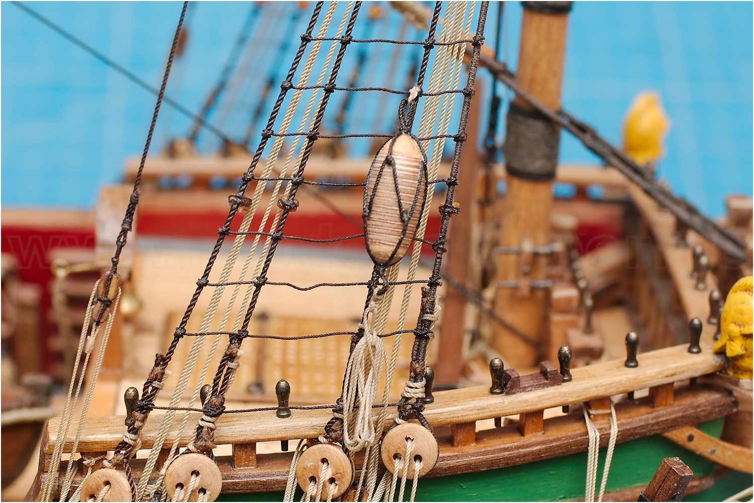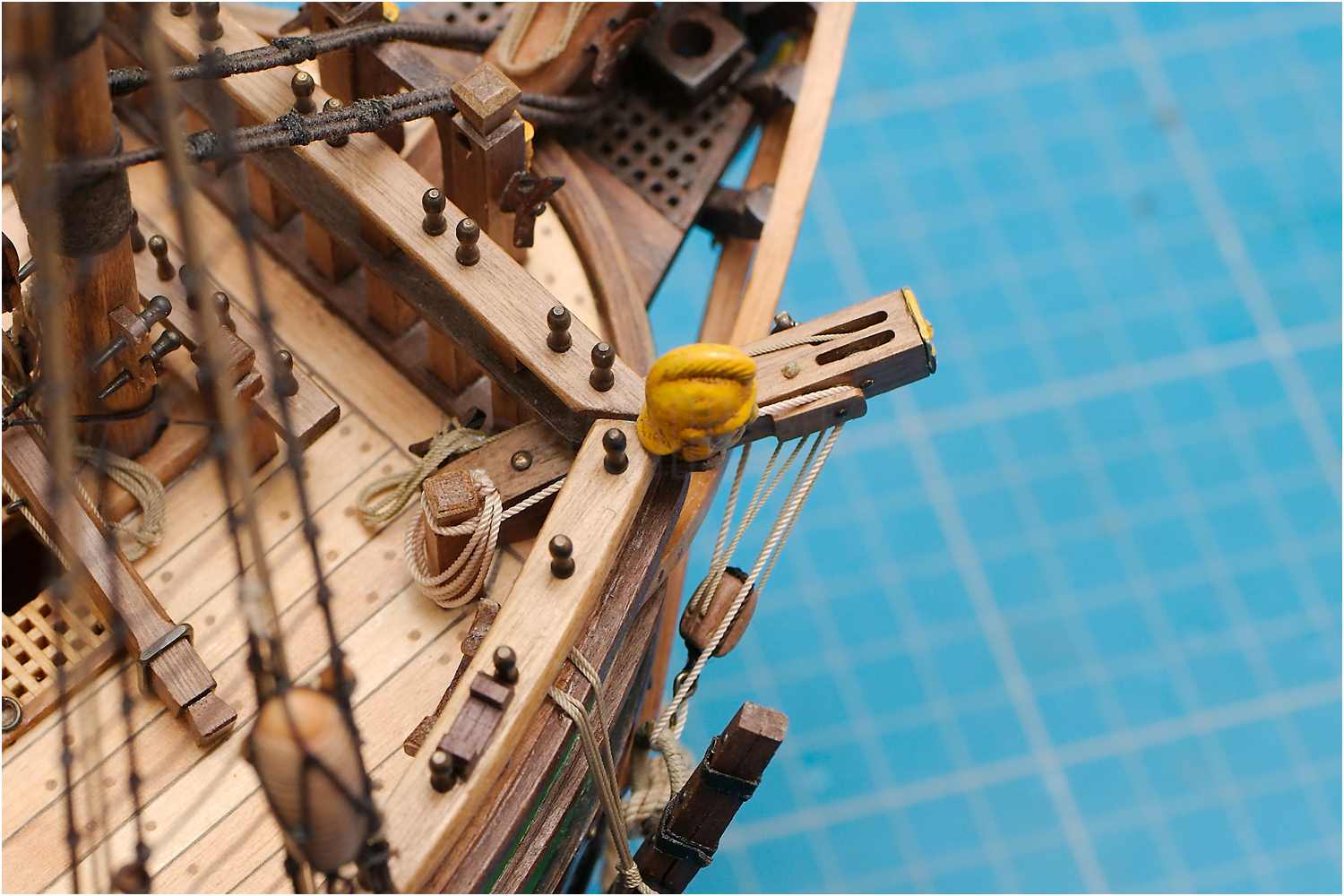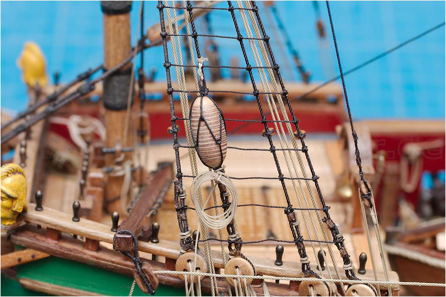 Für das Bekleiden der Ankerringe habe ich mir 0,3 mm Taue aus 3x2 200-er Güthermann-Garn gereept.