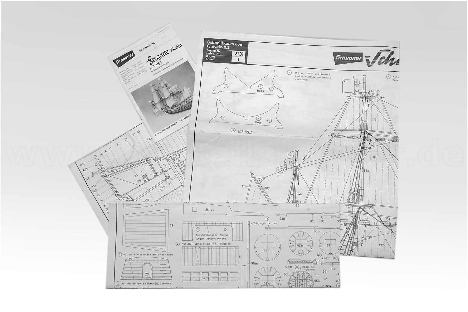 Die Beschreibung des Bausatzes selbst enthält eine Liste des stehenden und laufenden Gut, abschnittsweise nummeriert. Dazu gibt es weiterhin acht übersichtlich detaillierte Zeichnungen, in der die Nummern wiederzufinden sind.