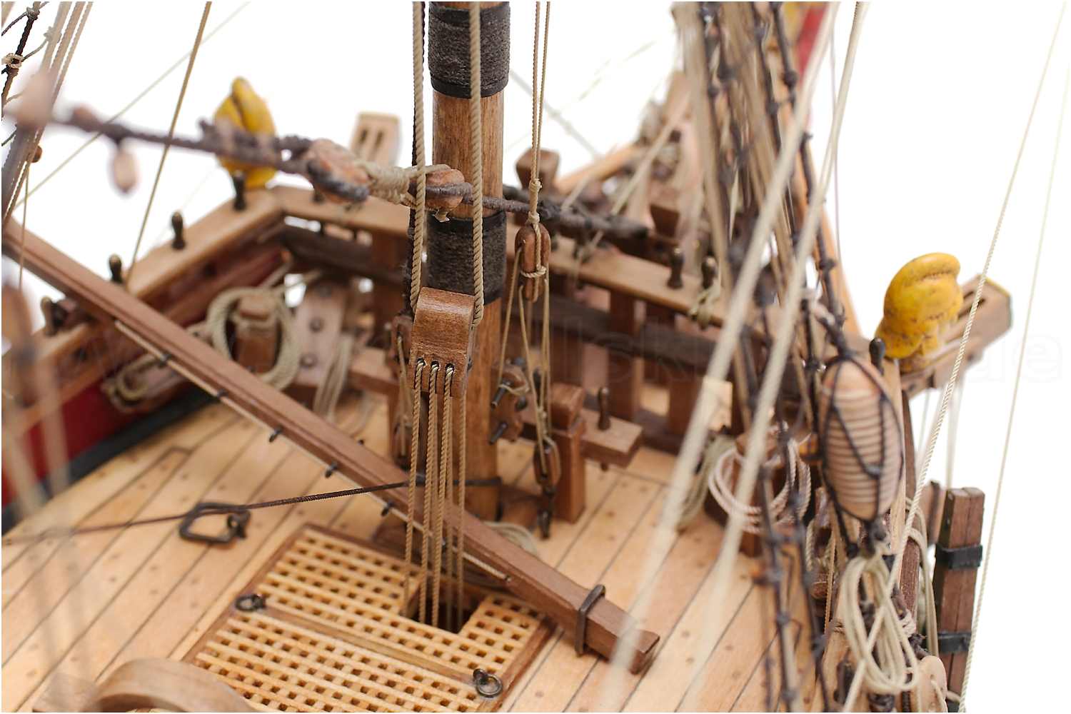 ein Stück bekleidet, wie PW 86 (1), fest am Schothorn mit Stopperknoten, durch Löcher im Scheg, fest an Kreuzholz Bb/Stb Backdeck Quellen: PW 90 (7), MS 78, AN 155 |