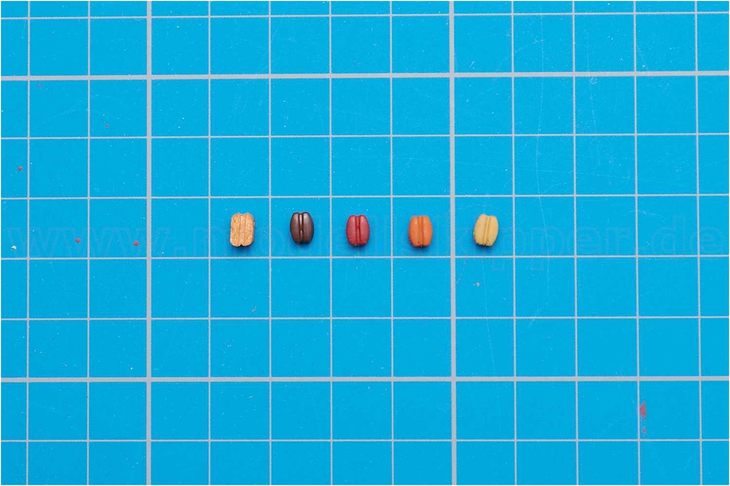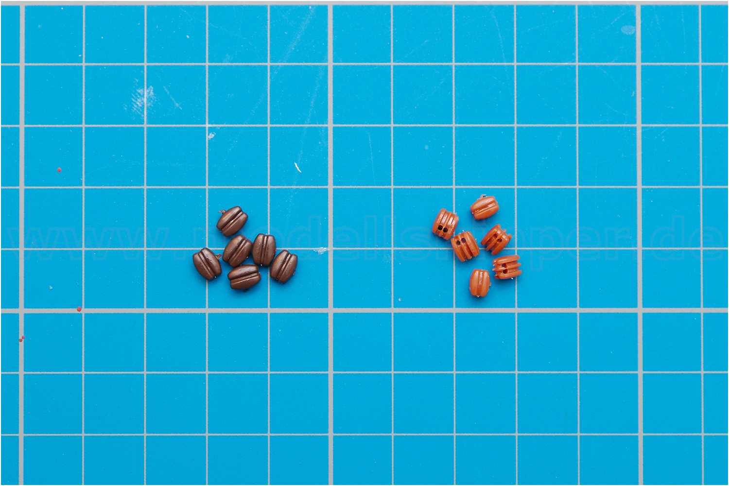 Nur noch die Wahl des Farbtons musste festgelegt werden. Die Entscheidung fiel auf Dunkelbraun (Revell 37) und so wurden 470 Blöcke verschiedenster Größe lackiert.