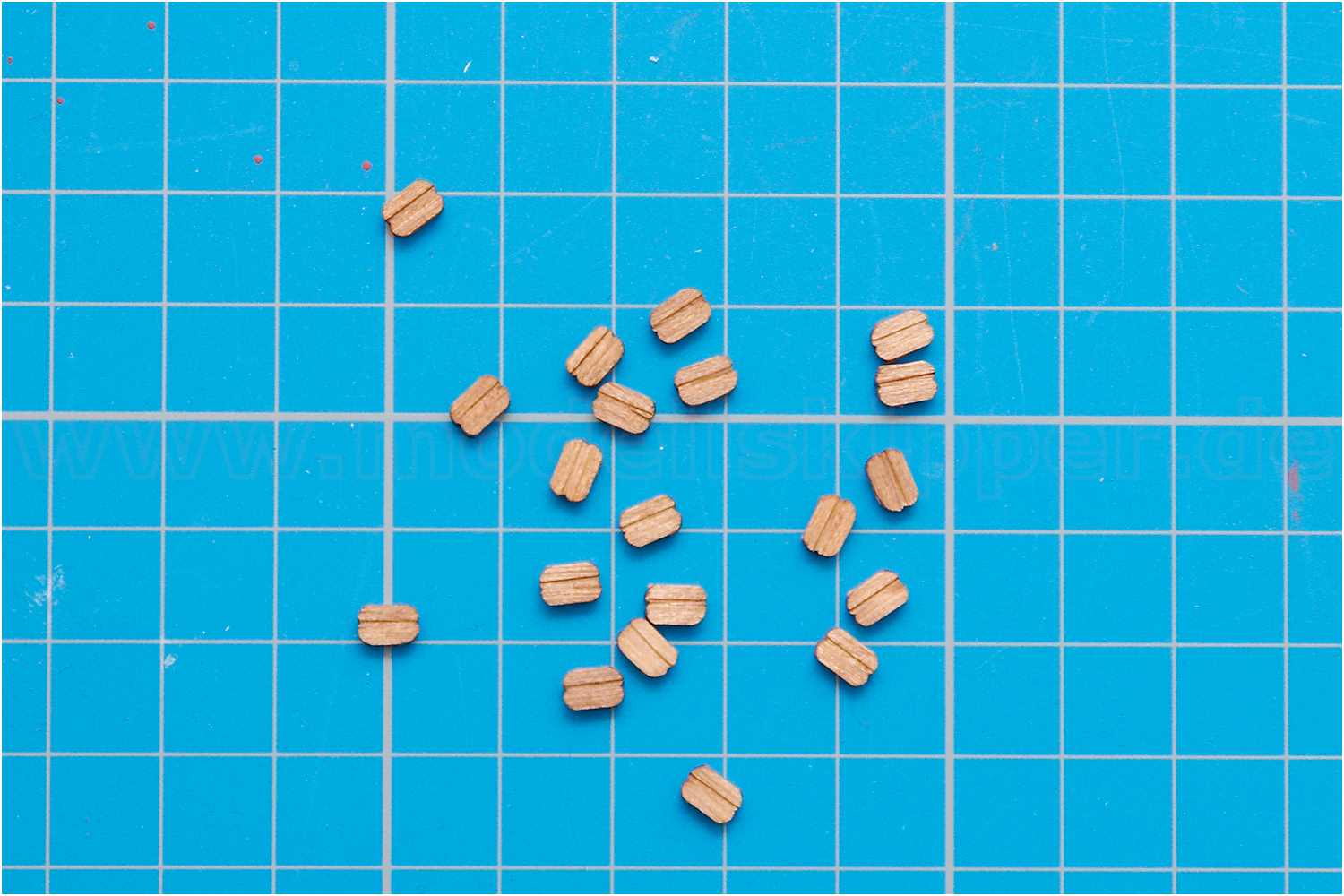 Am Anfang dieses Projektes, bei meinem Wiedereinstieg nach der Modellbauschaffenspause, hatte ich für die Serienfertigung von Blöcken noch keine maschinelle Unterstützung und hatte wenig Lust knapp 500 Blöcke mit per Hand zu schnitzen.