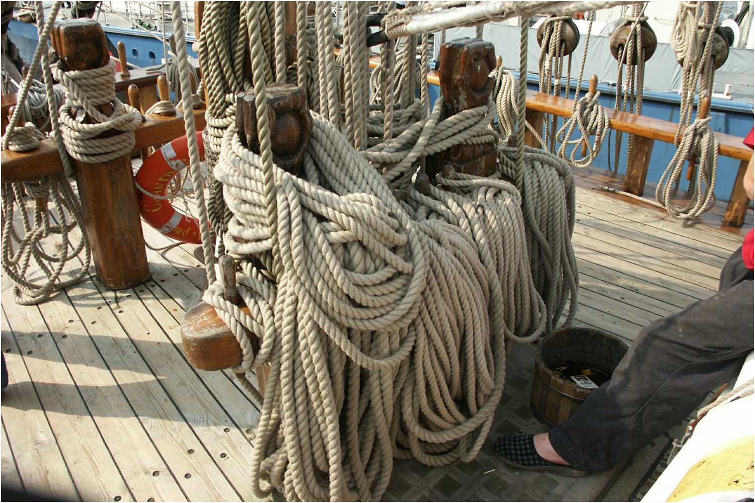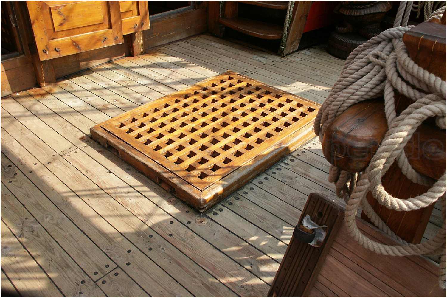 Jeder Plankengang auf Deck setzt sich aus mehreren Leisten zusammen. Die in einer geraden Linie nebeneinander verlegten Decksplanken werden gestoßen, der Schandeckel verläuft in einem Bogen und erhält eine sog. Laschung.