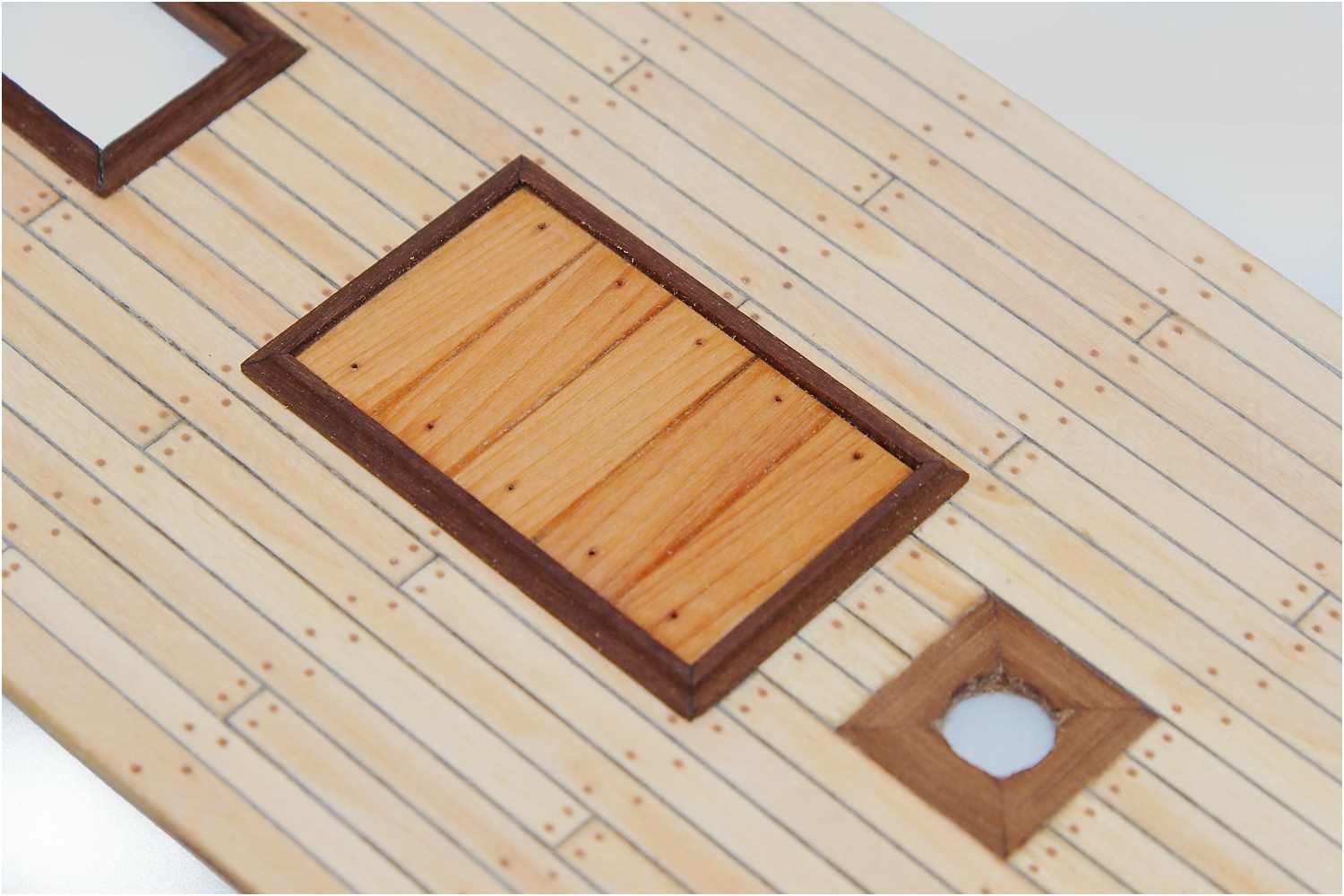 Die Ladeluke ist eigentlich laut Plan kürzer, sie wurde von mir so angepasst, dass die Abmessungen zu den Decksbalken passen.