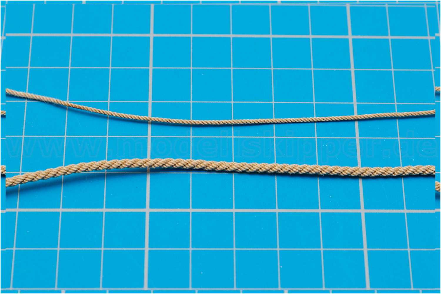 Für die Herstellung der Taue nutze ich die Garnstärken 180, 200, 240, 360, 400 und 420. Damit kann ich recht flexibel alle notwendigen Taustärken realisieren.