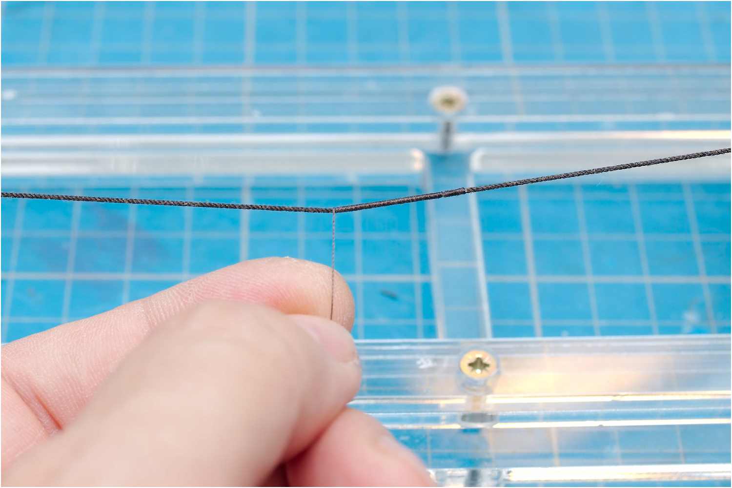 Anfangs kam noch Gütermann-Garn vom Typ Mara zum Einsatz, das jedoch bei mehrfachem Ziehen durch die engen Bohrungen der Blöcke dazu neigt, dass sich Fasern aufstellen.