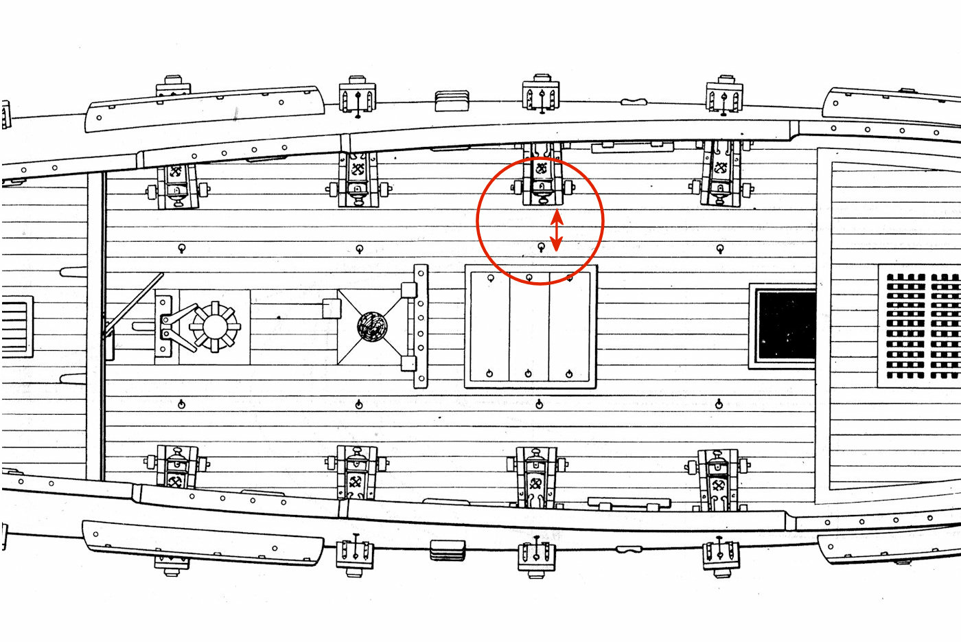 Recherchen haben ergeben, dass Rückholtaljen bei gefechtsbereiten Geschützen durchaus auch verstaut waren und die Kanonen mit den Seitentaljen fest gegen die Bordwand gezurrt sind. Nach dem Schuss konnten die Taljen in der Aufgabe als Stopper jedoch bei Bedarf eingehakt werden, um die Kanonen im eingerannten Zustand festlegen zu können.