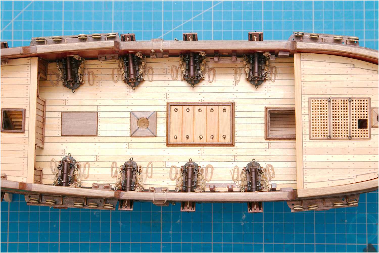 Das Aufstellen und Takeln der Kanonen waren mit etwa 38 Baustunden recht zeitintensiv, es hat jedoch sehr viel Freude bereitet diesen Bauabschnitt wachsen zu sehen.
