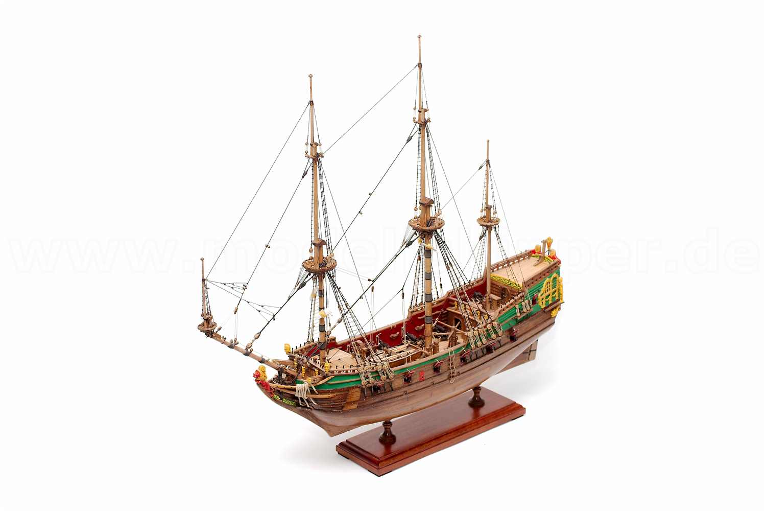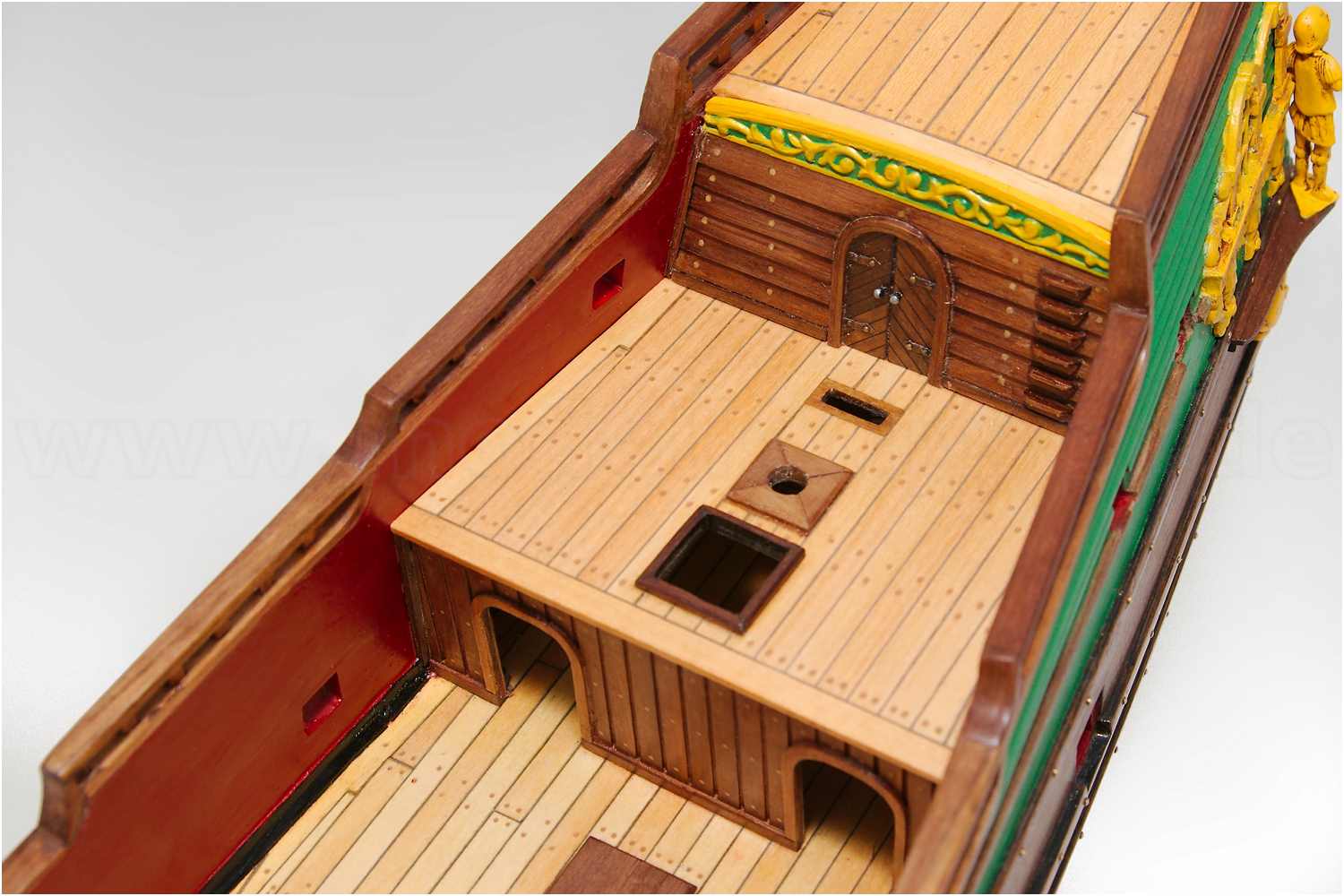 • einige Beschläge wie Gräting, AnkerBlöcke und Belegnägel werden zugekauft, wie auch der Bausatz eines Beibootes