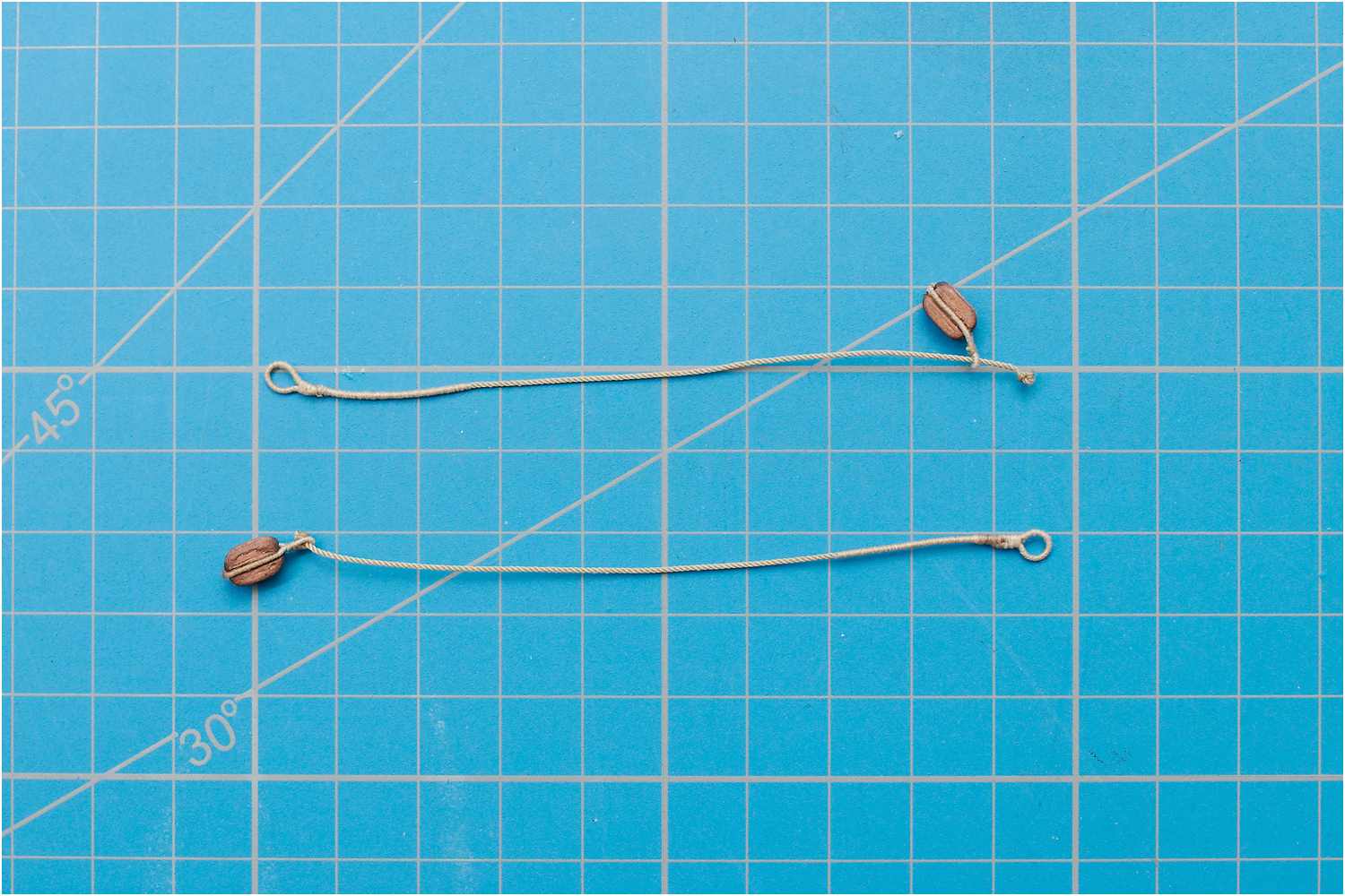 Diese Taue bestanden z.B. aus Fasern der Hanfpflanzen oder Blättern von Agaven (Sisal) und bleiben naturbelassen. Möglich sind beige Farbtöne bis helles Sandfarben, jedoch nie weiß. Die für meine selbst hergestellten Modelltaue genutzten Gütermann- und Alterfil-Garne bieten eine gute Farbauswahl an.