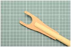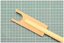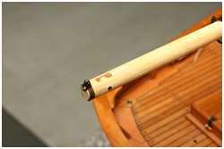 Ich habe ihn mit Absicht nicht verklebt, denn sollte später mal einer der hölzernen Mastringe brechen, kann den Messingstift wieder rausdrücken und den Sattel ohne größere Probleme entfernen.