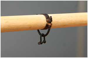 Die Klau wurde verbolzt, es wurden Augbolzen für den Halsstropp des Segels und die vorderen Reffleinen angebracht. Die auf eine Leine aufgefädelten Holzkugeln, sog. Korallen, halten den Baum am Mast.