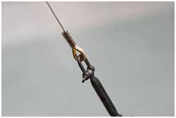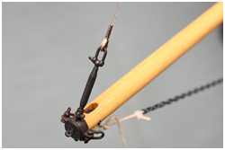 Nahaufnahmen vom Klüverstag: Spannschraube und Schäkel sehen sehr realistisch aus. Das Stag hat natürlich auch eine Kausch, die Klemmhülse ist aus dem Anglerbedarf.