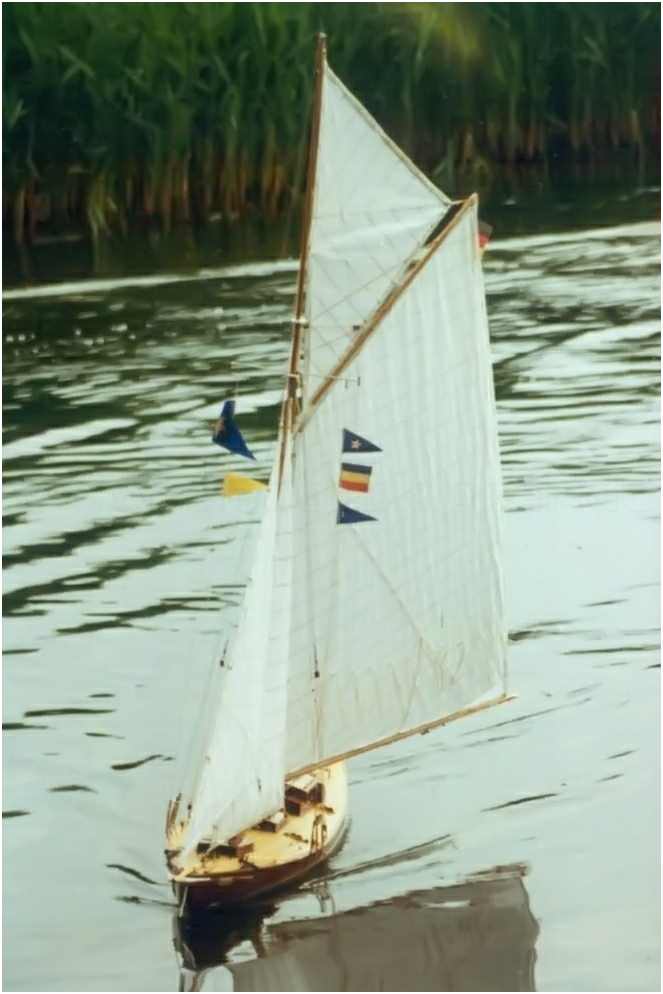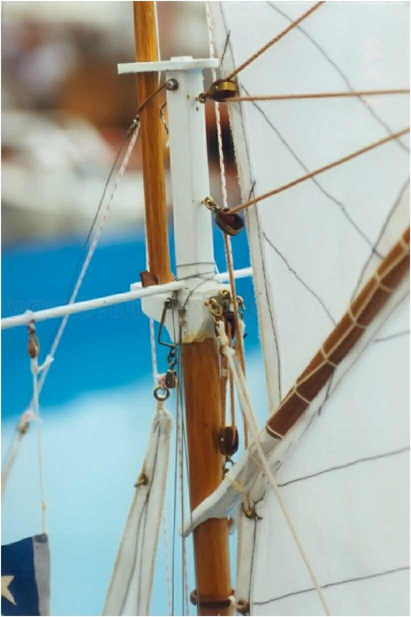 Die Segel des Modells werden über zwei, unter Deck eingebaute Segelwinden gesteuert, wobei die beiden vorderen baumlosen Segel wie beim Original ''übergeholt'' werden können. Die Segelfläche von ca. 60 dm² ist fast zu viel des Guten, wird aber je nach Windstärke angepasst. Das Top-Segel kann komplett gerefft und die Fläche des Großsegels um 25 % verkleinert oder komplett niedergeholt werden. Auch das Fock- und Klüversegel können gerefft werden.