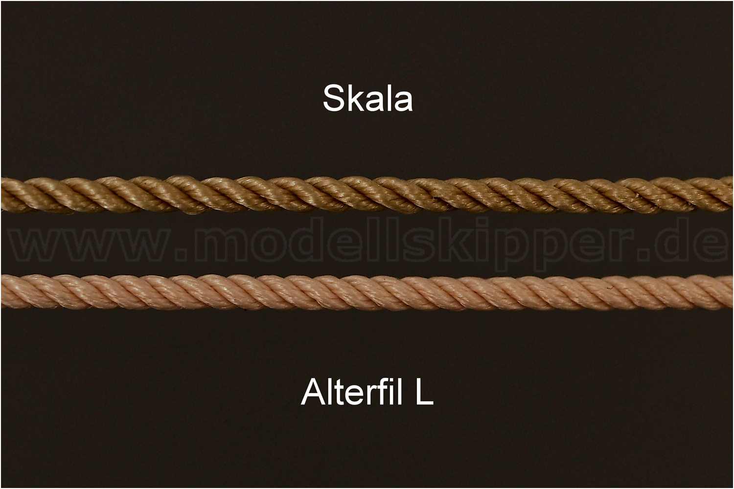 Die Garne sind in zahlreichen Stärken zu finden, von denen ich 120, 180, 200, 240, 360, 400 und 420 verwende und damit sehr flexibel Taue mit gewünschtem Durchmesser reepen kann.