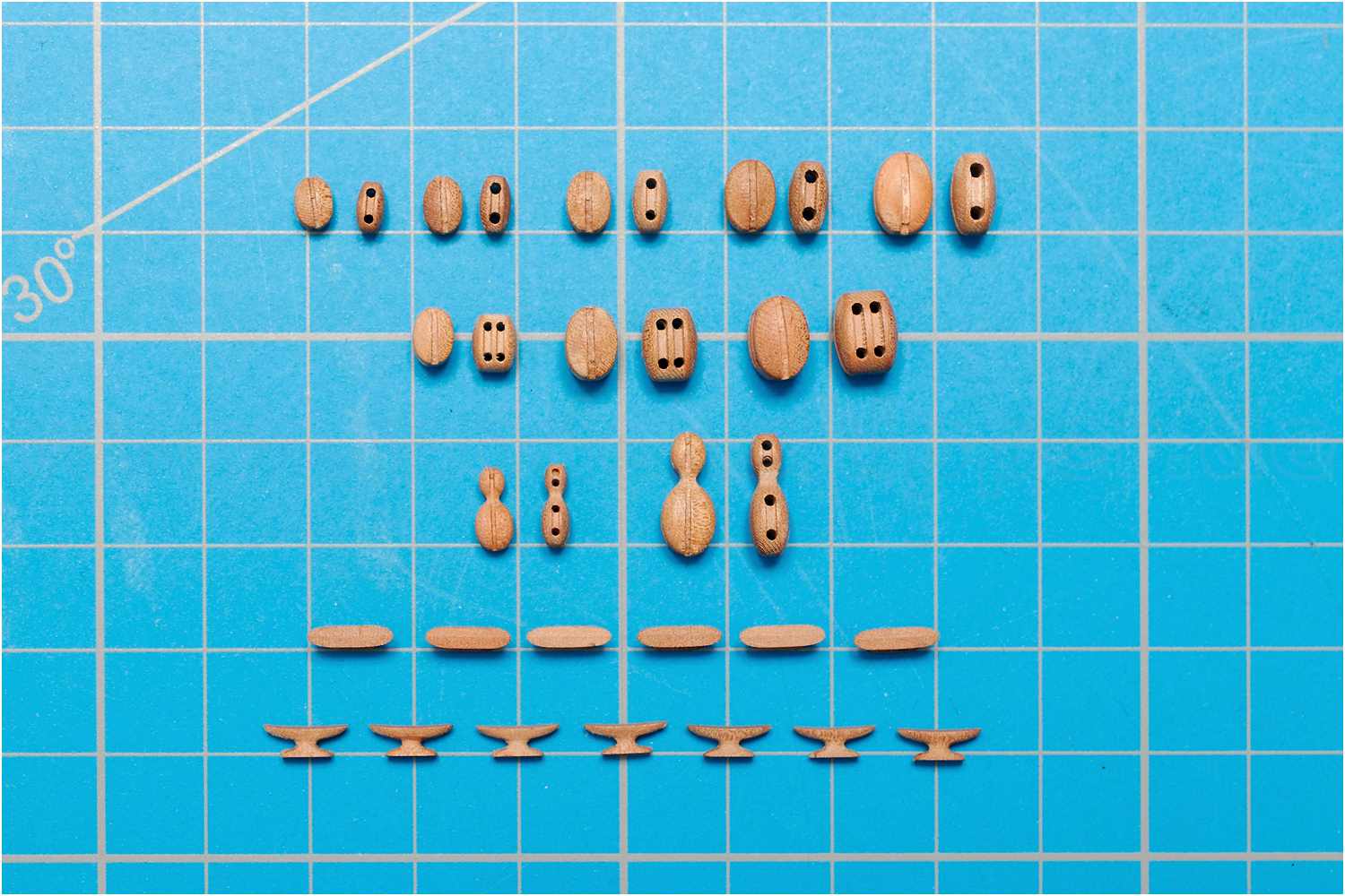 Wie beim Dekor und Holz für die Beplankung, nutze ich auch bei den Blöcken Birnbaumholz.
