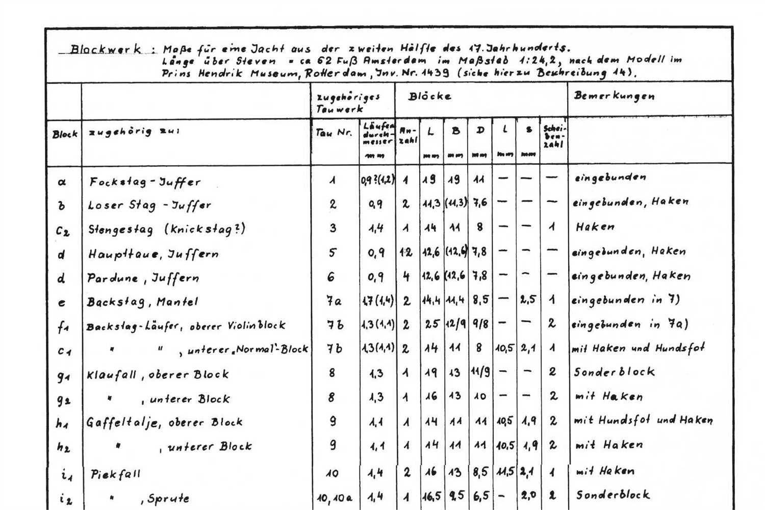 Taudurchmesser, sowie alle Größen und Typen der benötigten Blöcke und Klampen habe ich noch einmal mit den Quellen aus NJ abgestimmt.