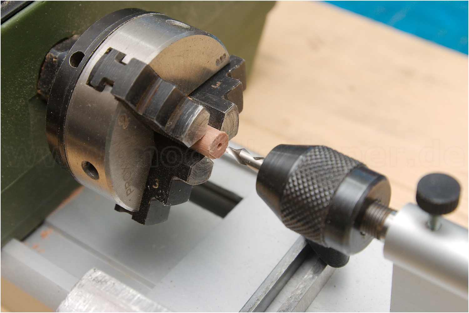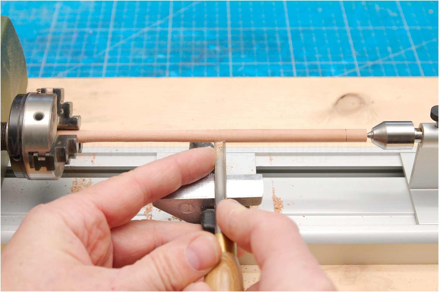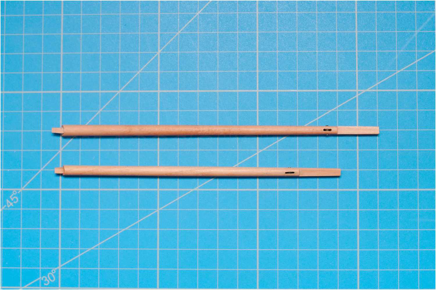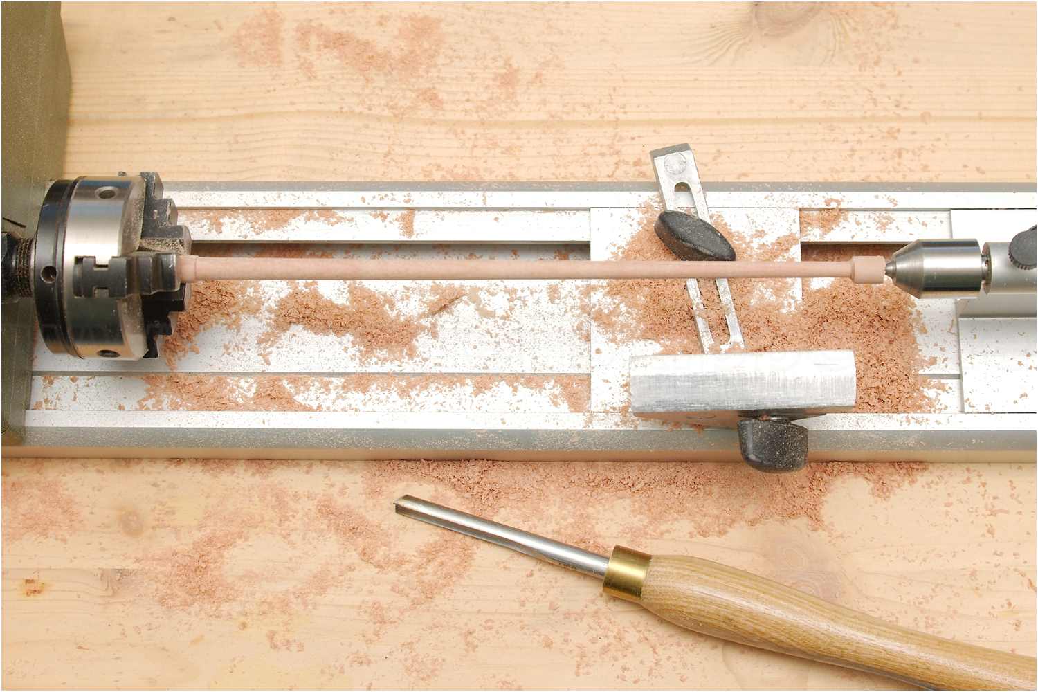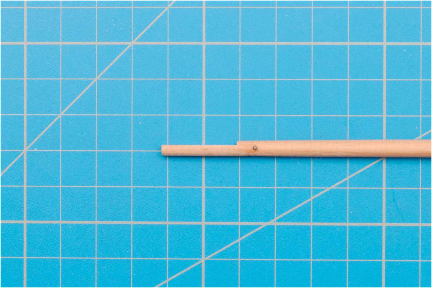 Das Bugspriet wird wie der Mast auf der Drechselbank verjüngt.
