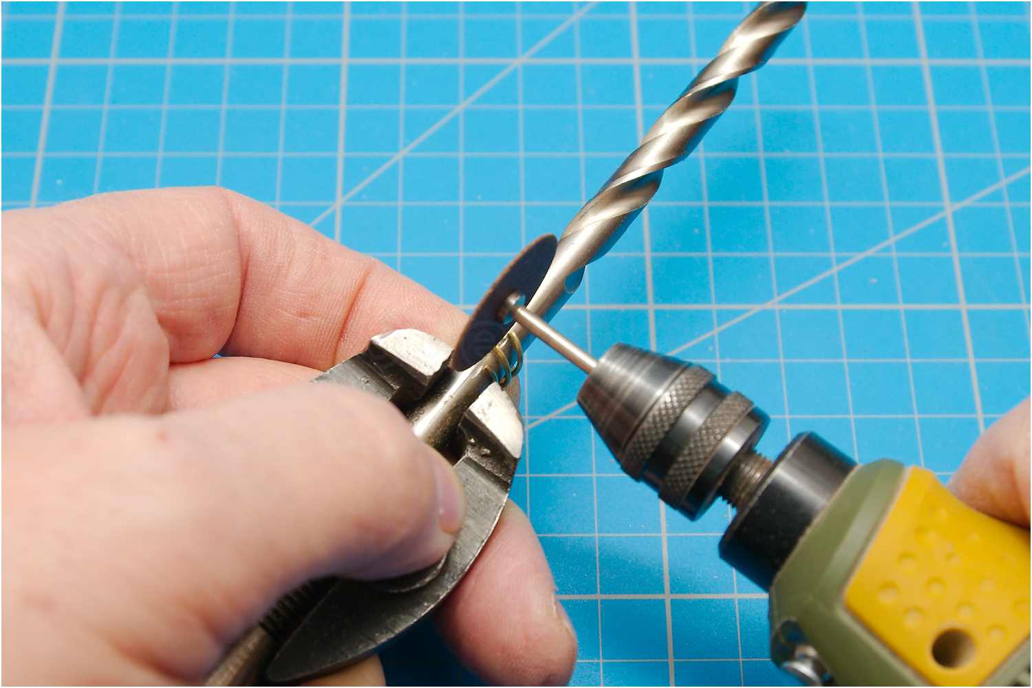 Den Ring biege ich mit Messingdraht über einem Bohrerschaft und schneide den gebogen Draht mit einer Trennscheibe.