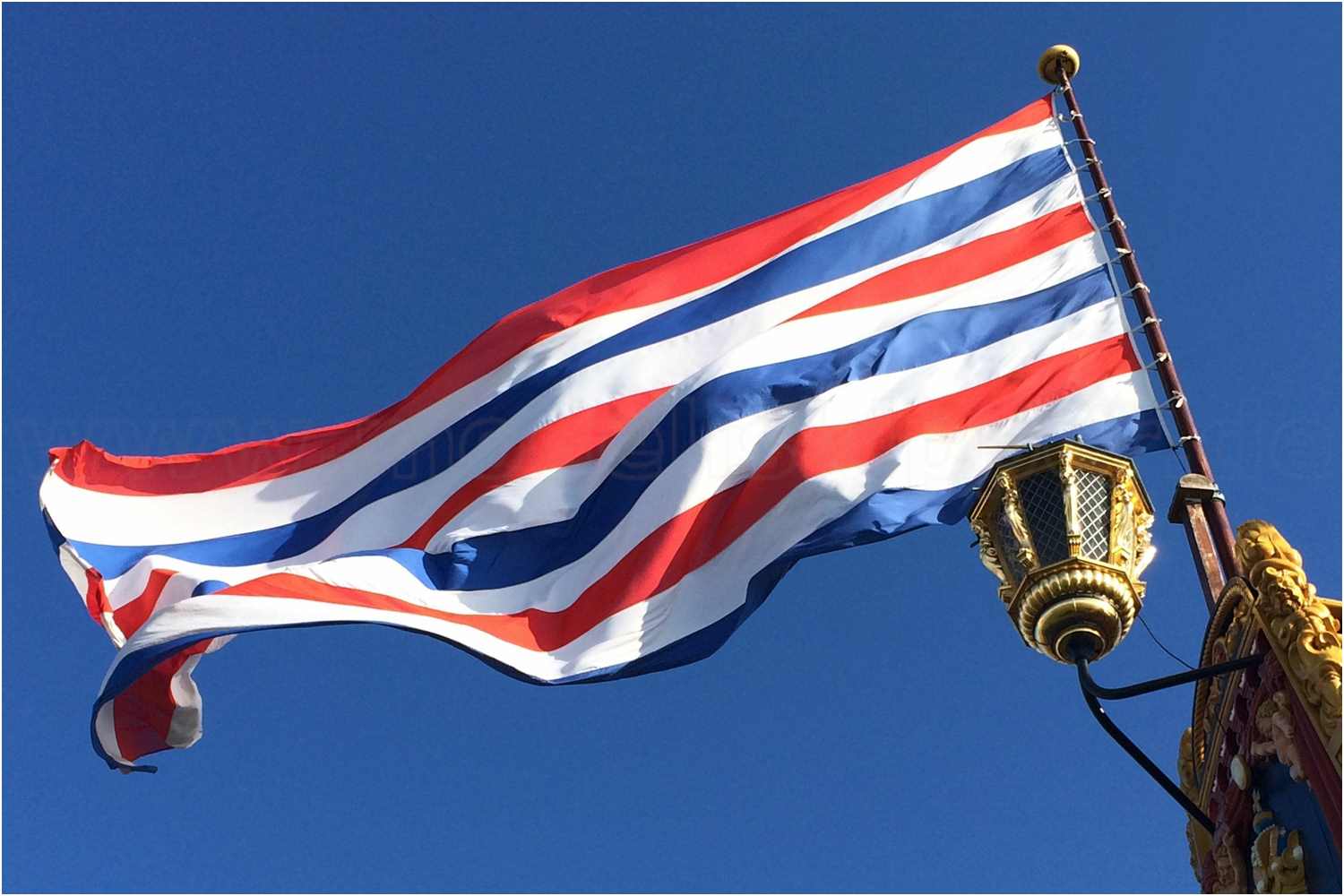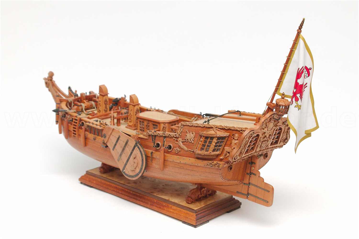 Auf dem Stockpfosten sitzt ein kleines Eselshaupt zur Führung des Flaggenmasts, mit der typisch holländisch geschwungenen Form der Oberseite.