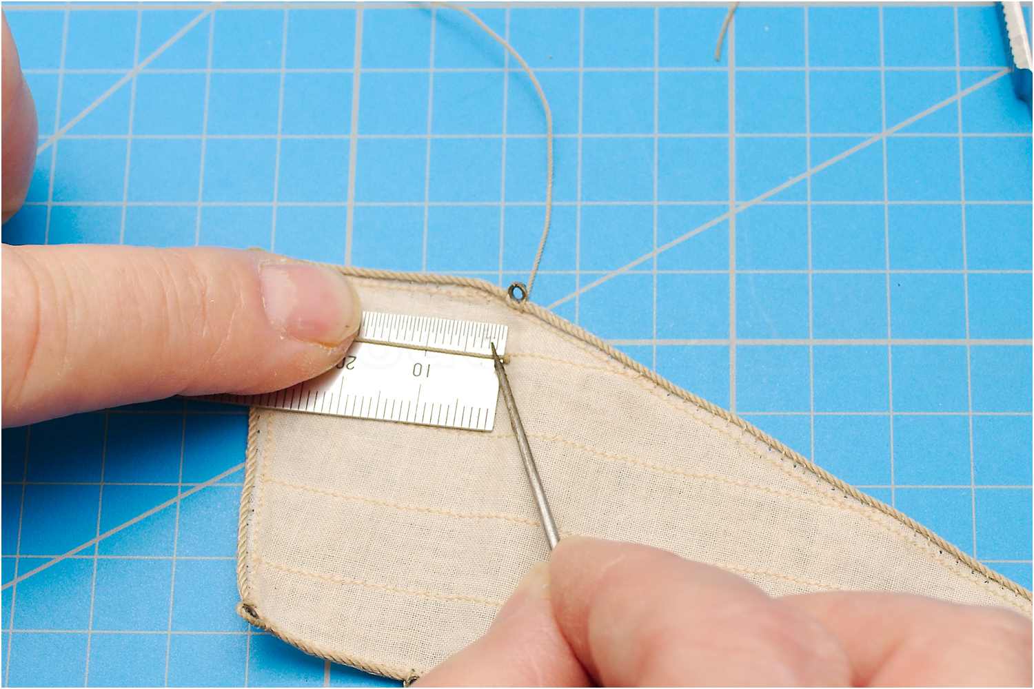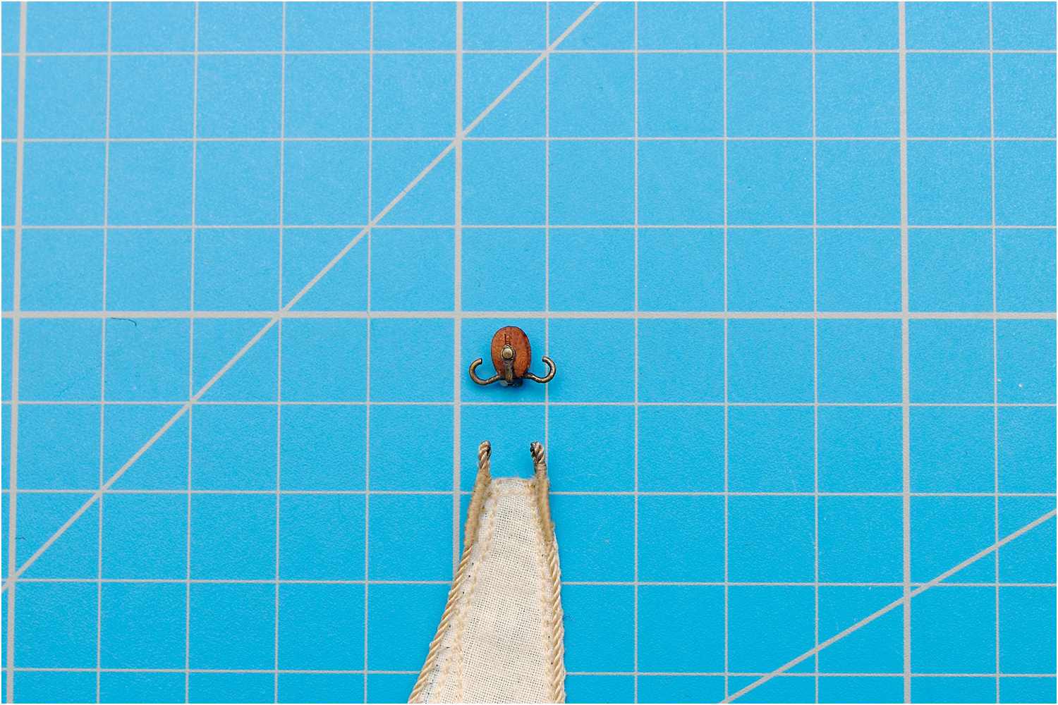 Die Länge des Bändsel wird abgemessen mit Sekundenkleber versiegelt und auf die notwendige Länge gekürzt.