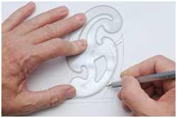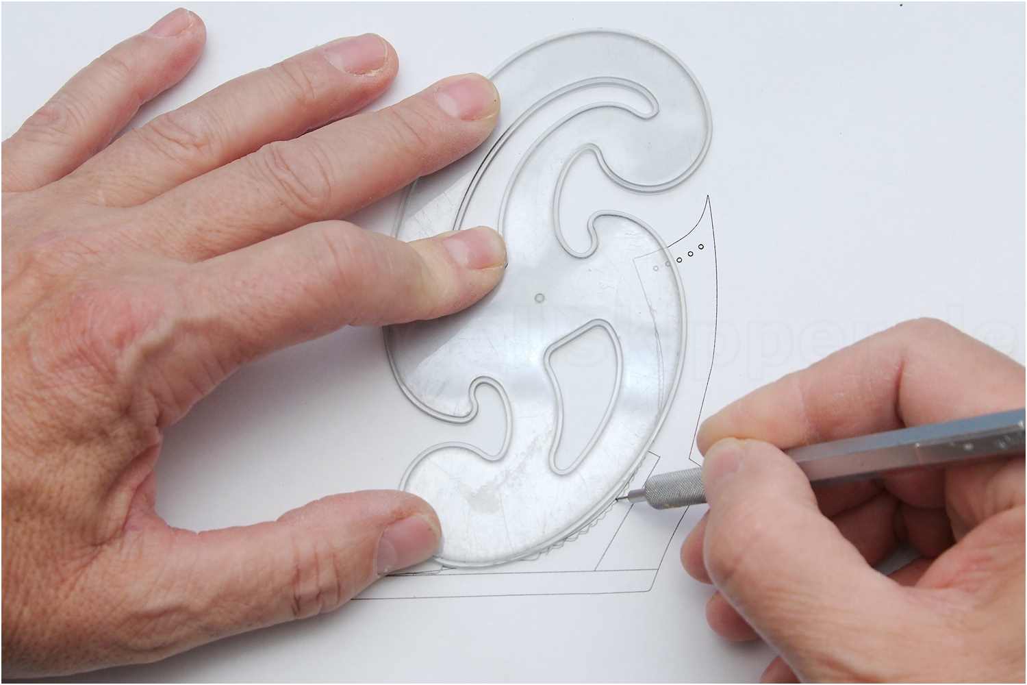 Mit einer Konturenlehre übertrage ich die Rundung des Bugs auf den Planausdruck und zeichne noch einmal größere Stufen mit einem Kurvenlineal nach.