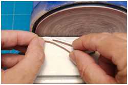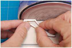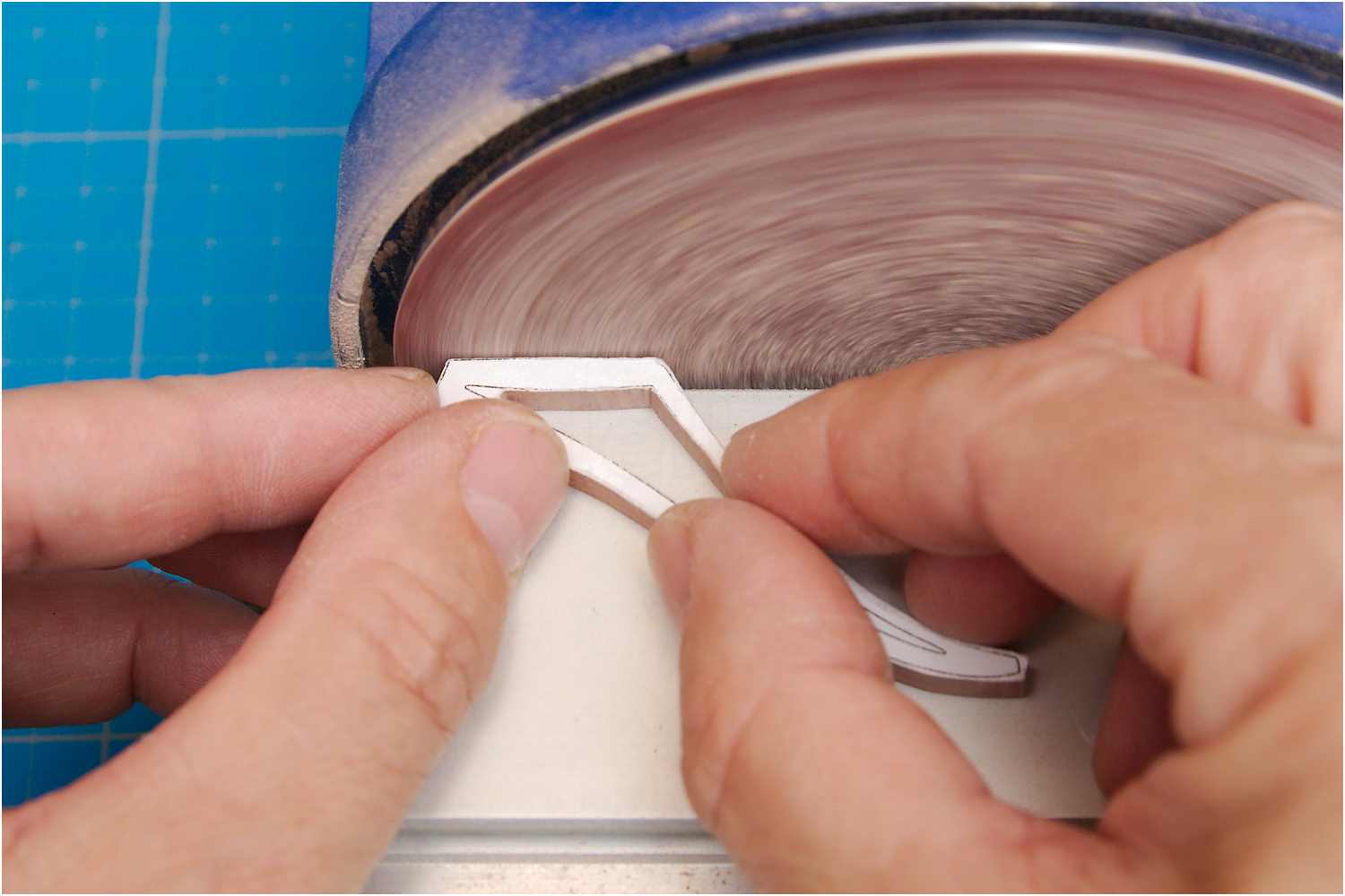 Seiten mit Innenbogen korrigiere ich noch einmal mit einem Rundschleifkörper, Außenbogen und gerade Kanten am Tellerschleifer.