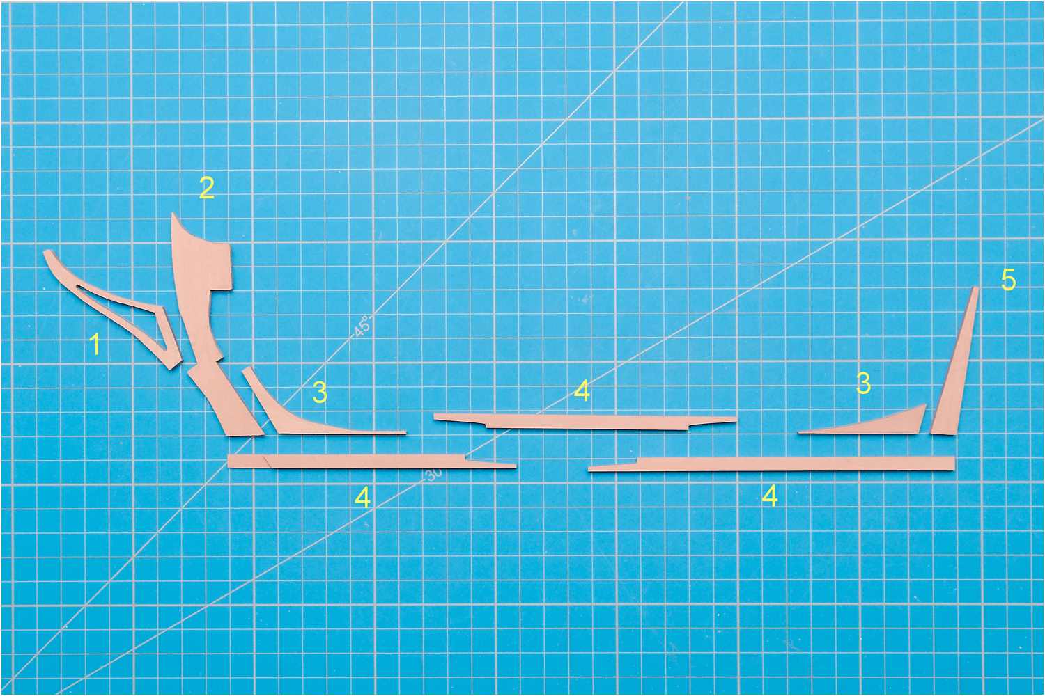 Den Kiel realisiere ich wie im Original aus mehreren Teilen. Dazu drucke ich mir eine Kopie des Plans aus.