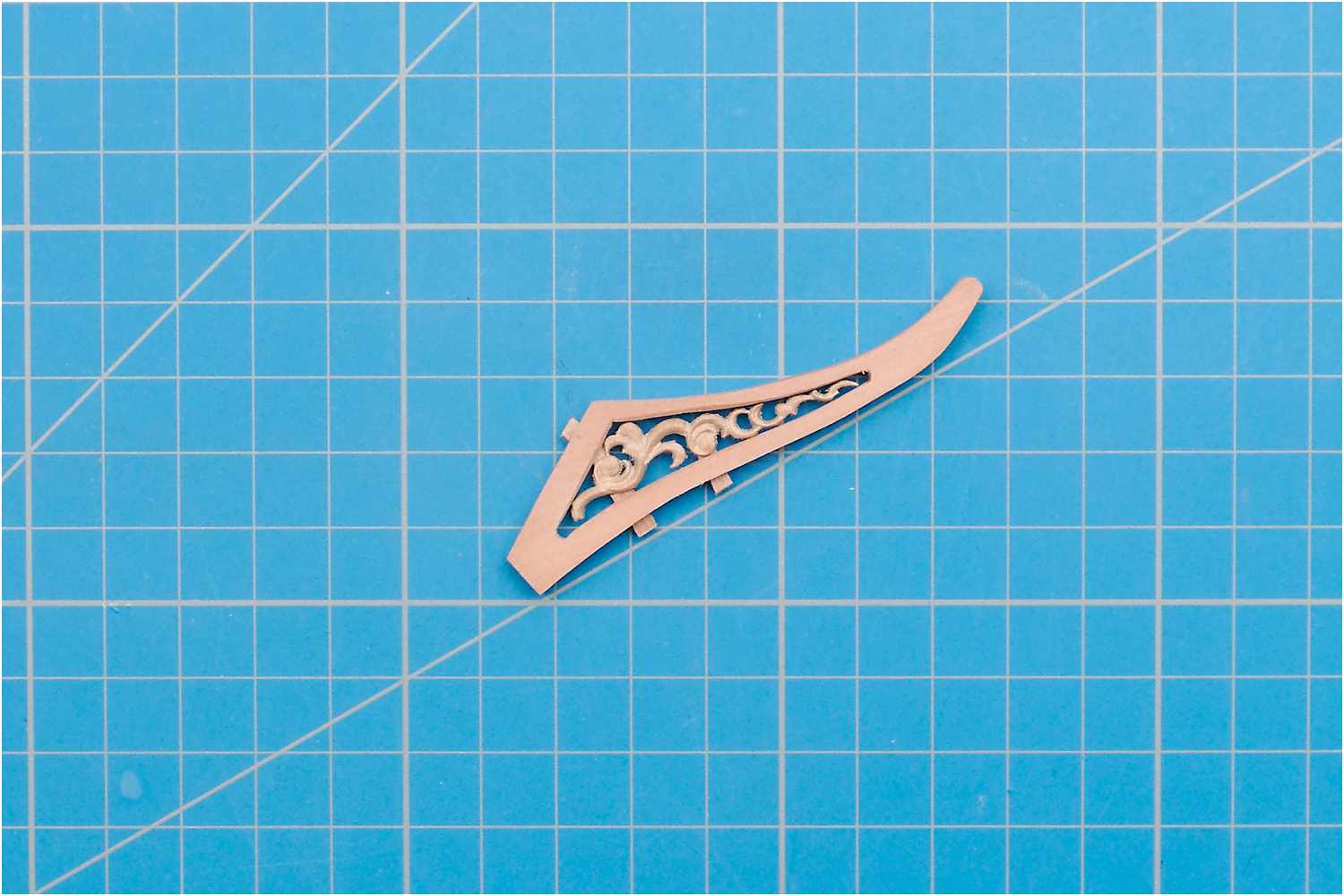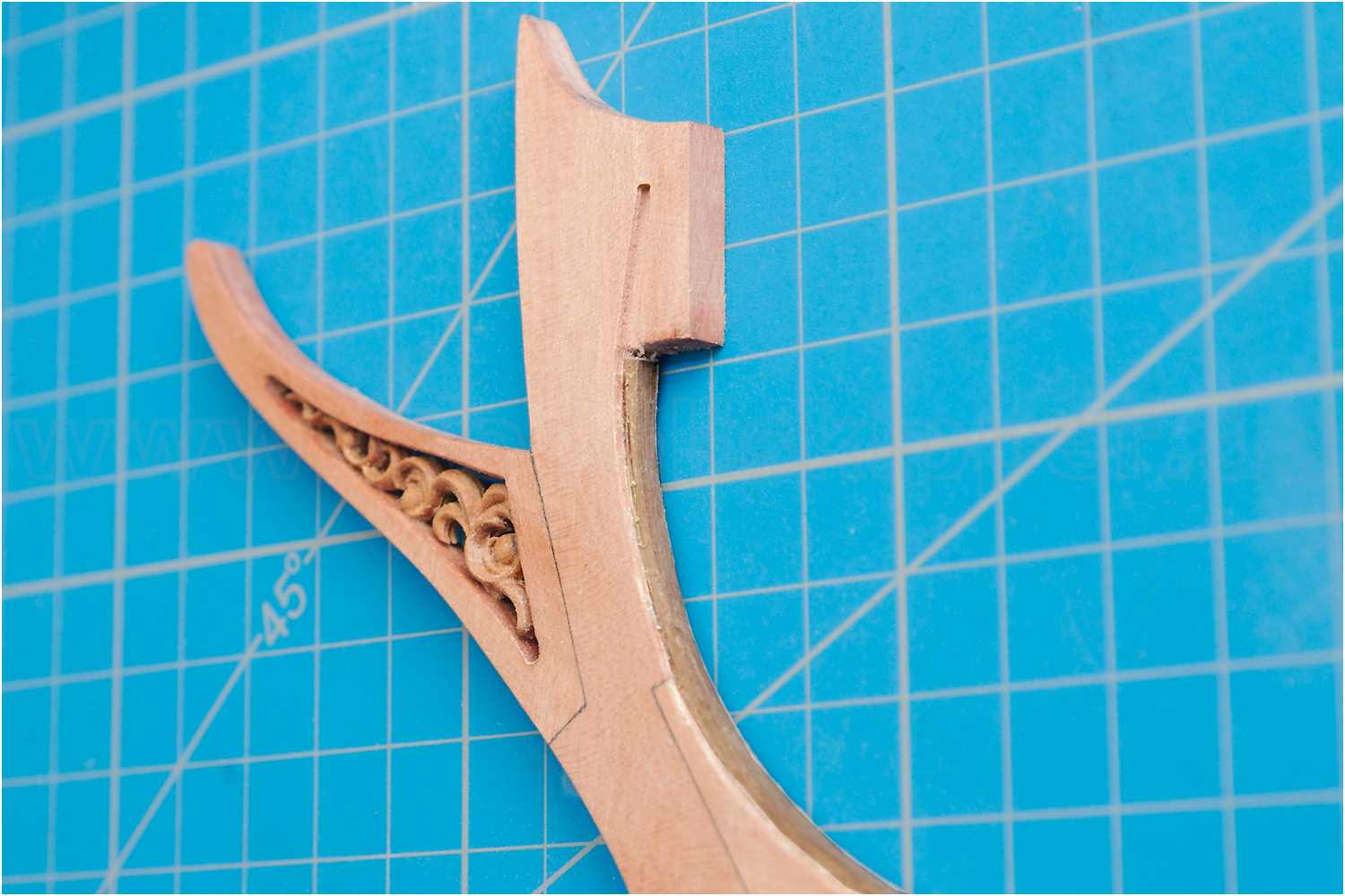 Der Galionsausleger ist nicht massiv, da hier ein Schmuckelement integriert wird.