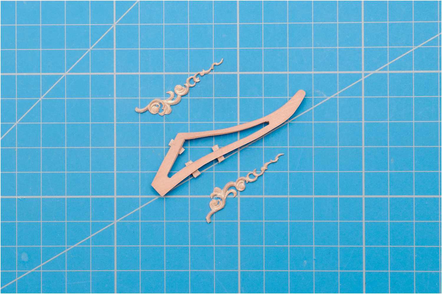 Da dieses Dekor aus zwei Hälften besteht, musste im Innenbereich des Auslegers eine Art Halterung realisiert werden.