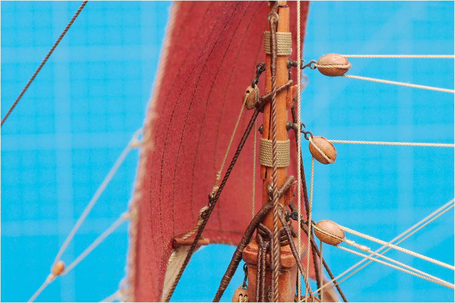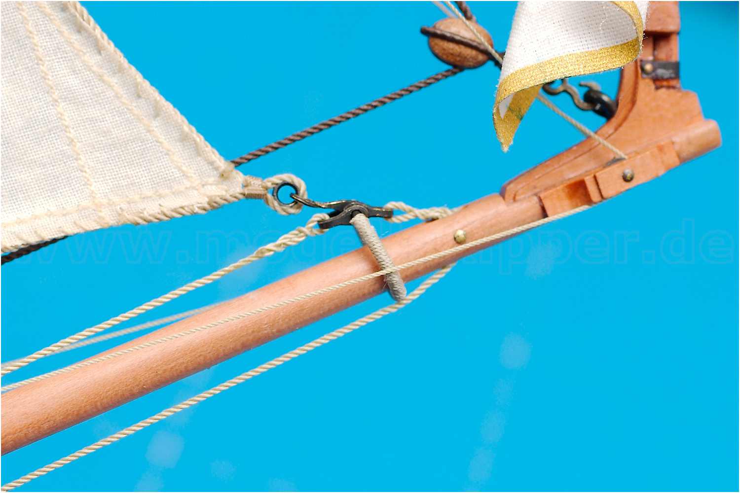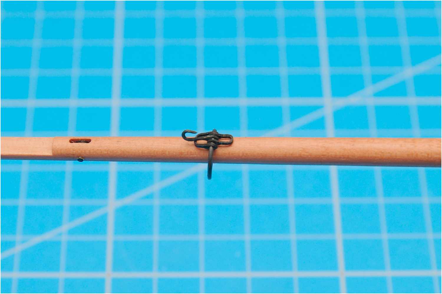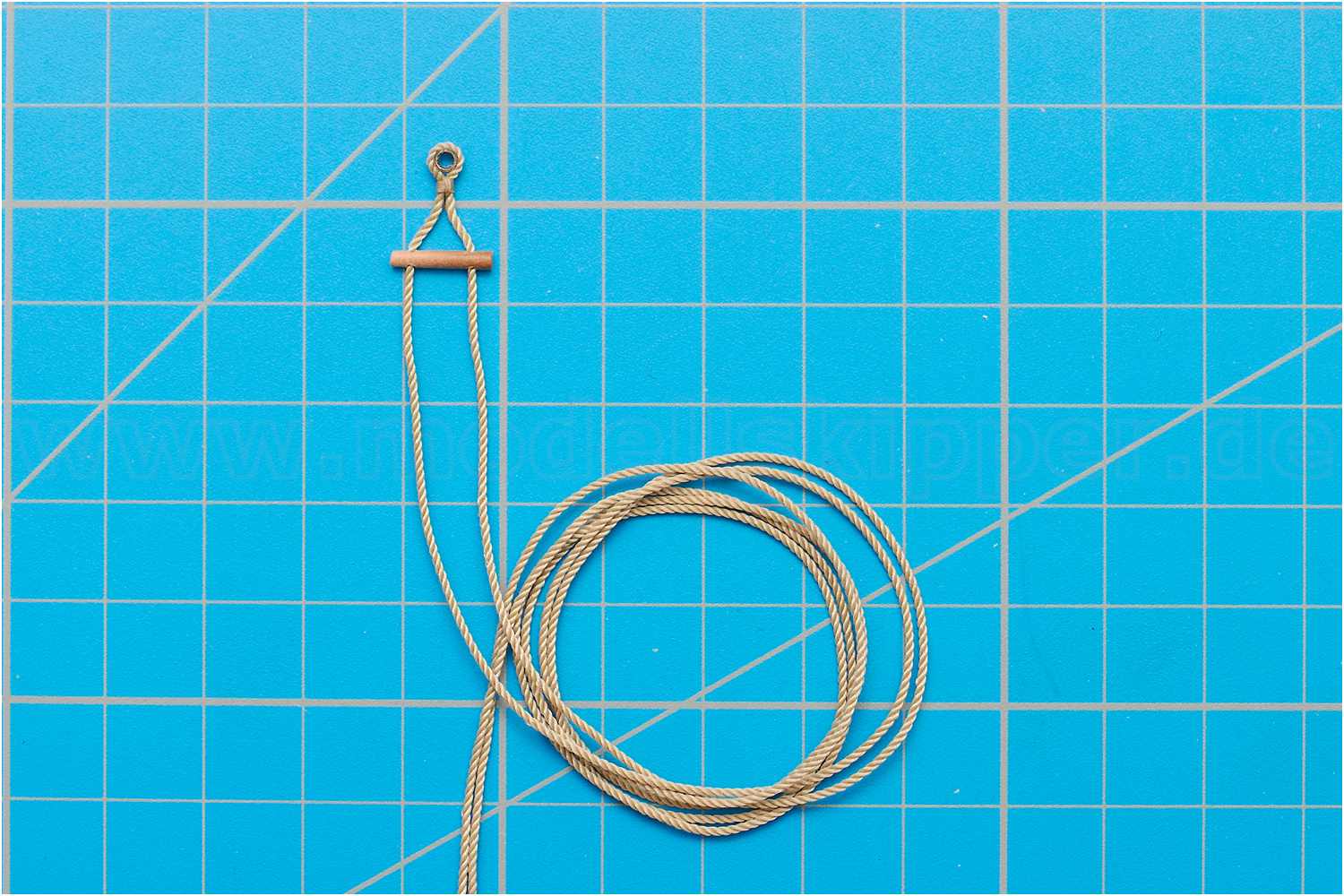 Abschließend wird der Ring mit einem 0,25-mm-Tau bekleidet und auf das Bugspriet gesetzt.