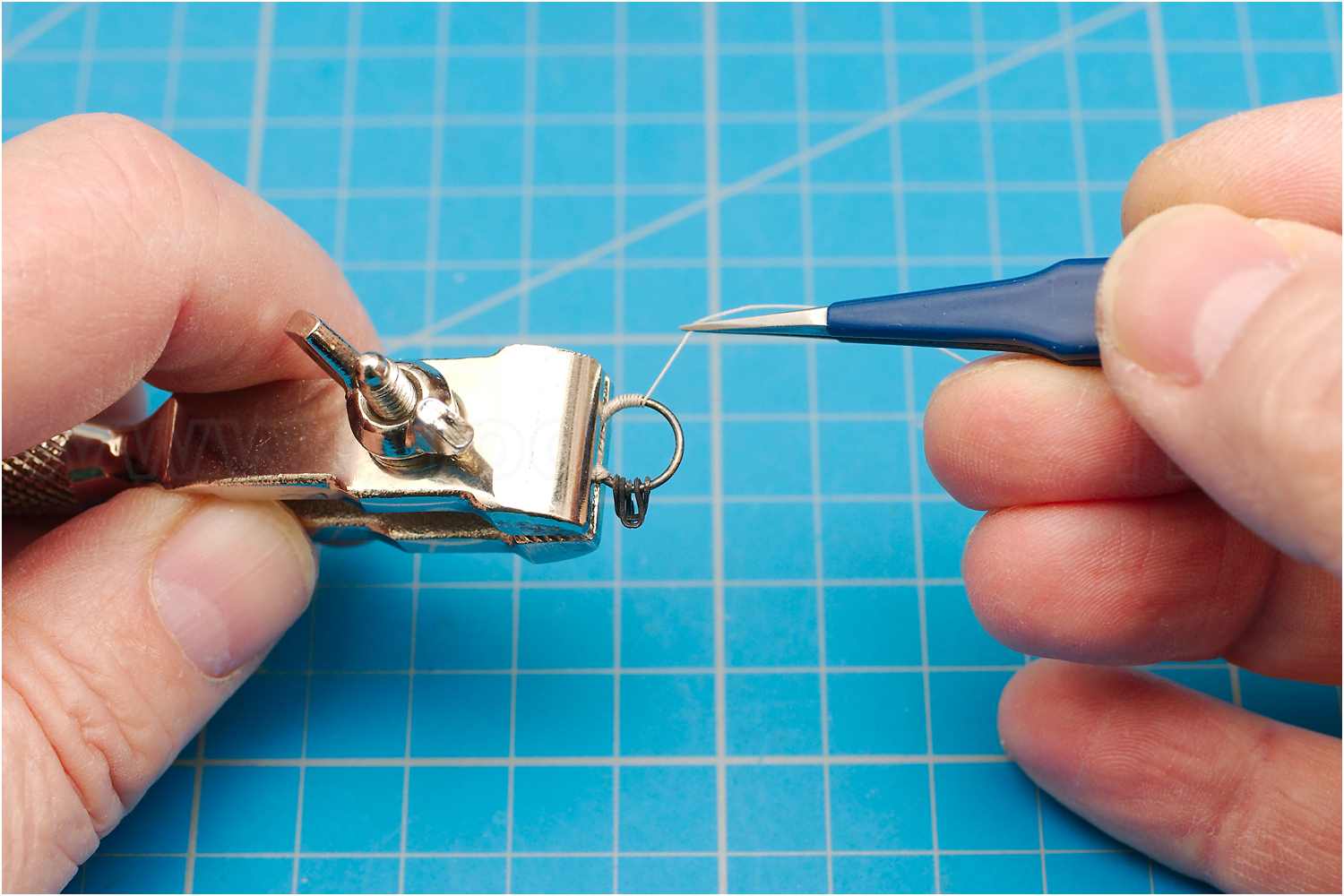 Haken und Bügel sind Ätzteile, bei denen ich mit einer Reibahle die Bohrungen für den Ring vergrößere.