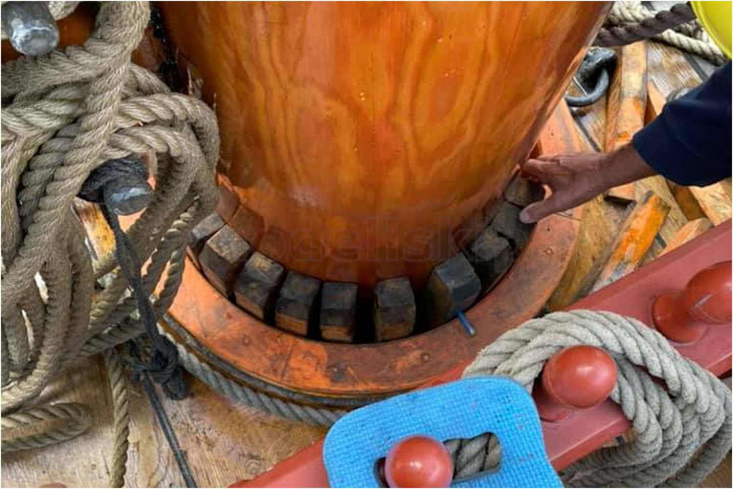 • [25] Fockfall - Augbolzen vorn im Masttopp vorn kurz über dem Kalbenbrett