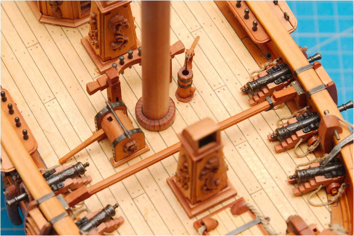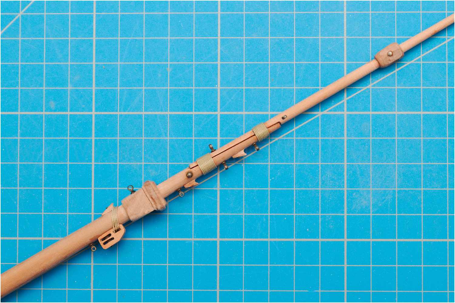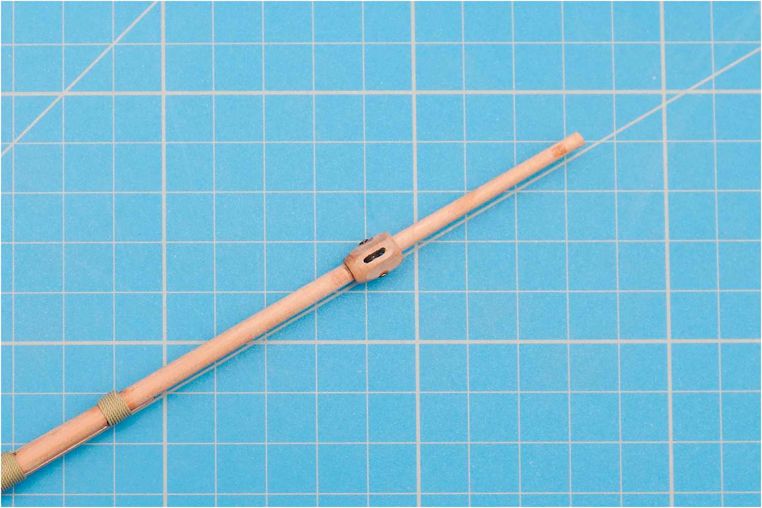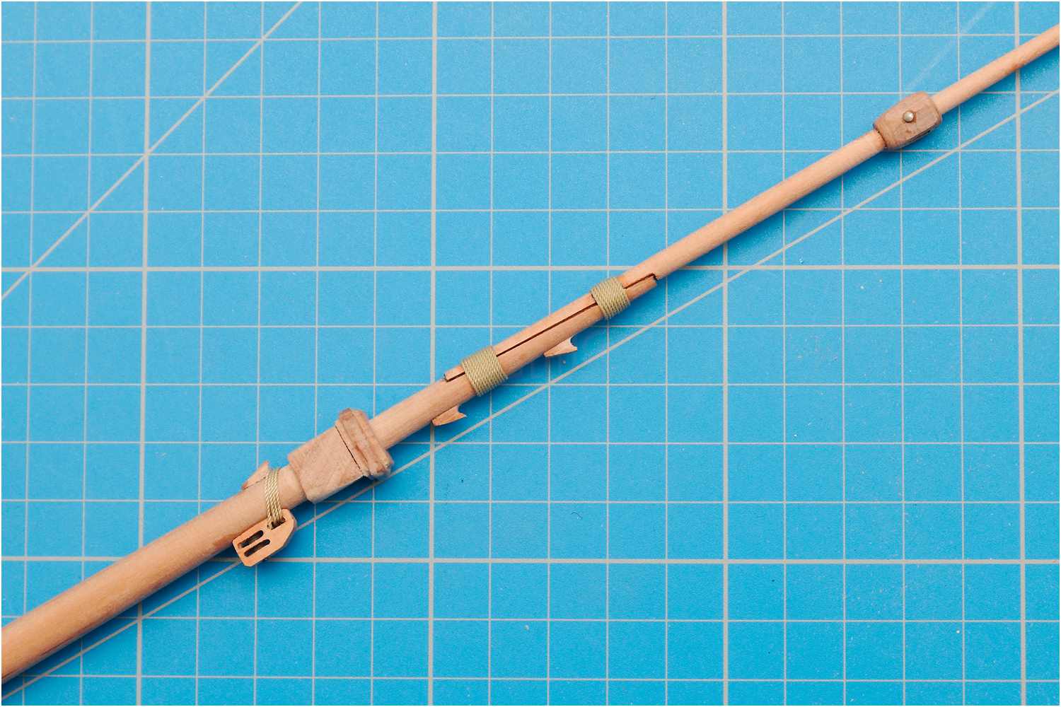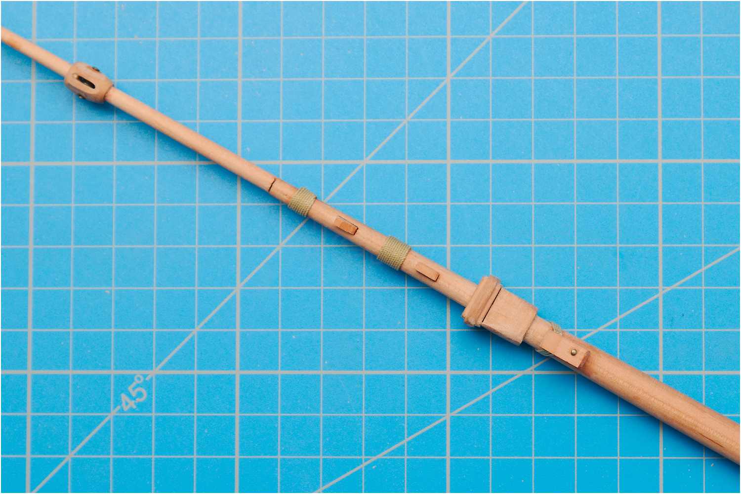 Der Masttopp erhält eine Abschrägung, gegen die die Stenge gelegt und mit Wulingen angelascht wird.