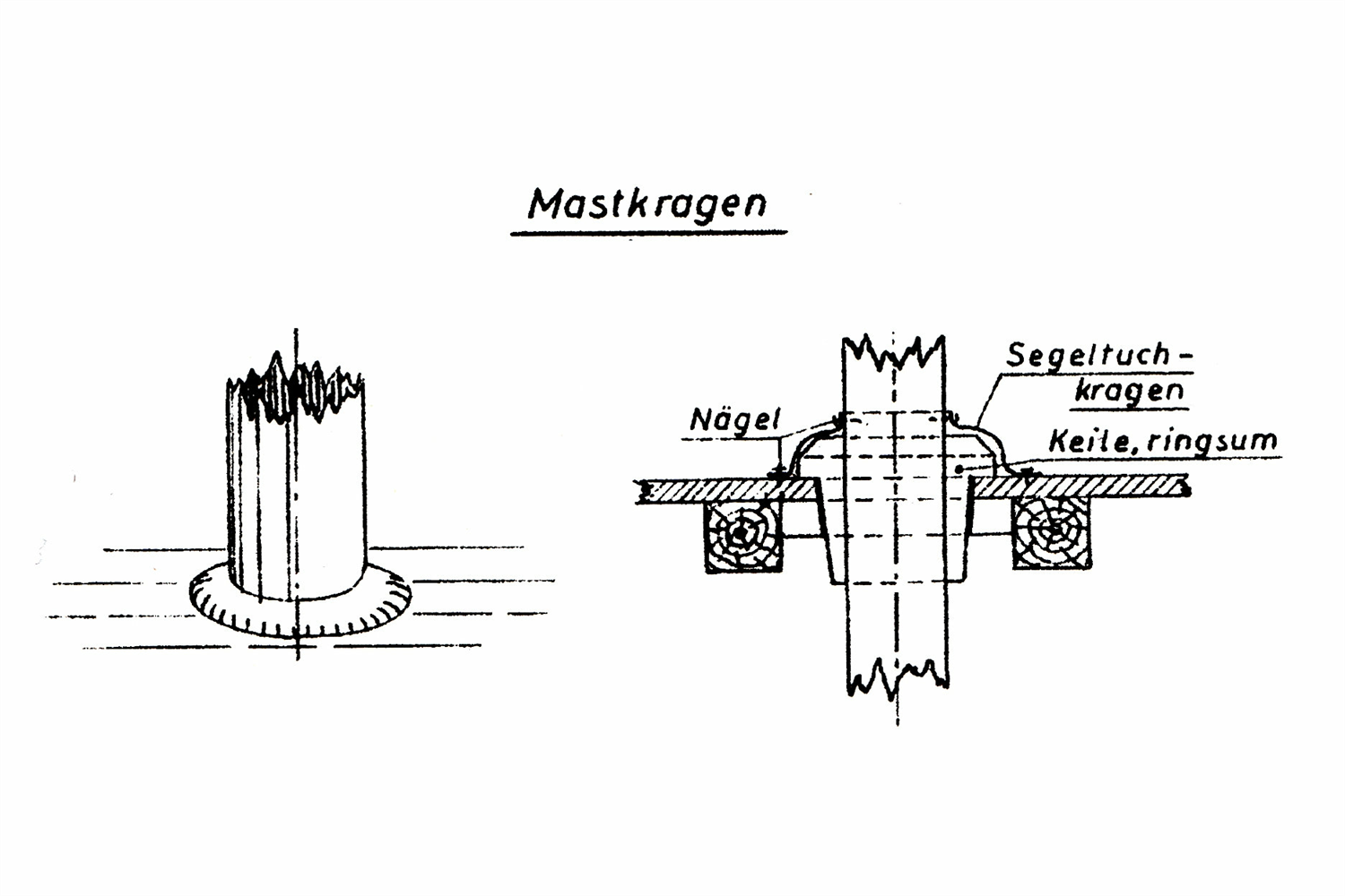Um einen wasserdichten Abschluss zu gewährleisten, erhalten die Keile einen Kragen aus geteertem oder geöltem Segeltuch.