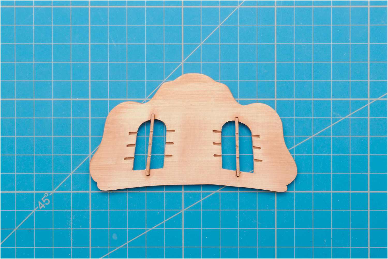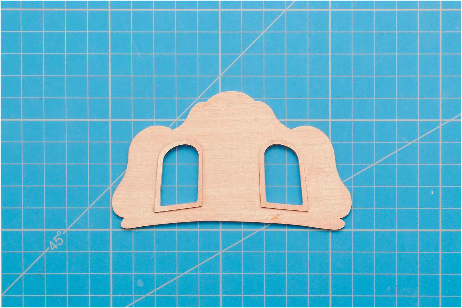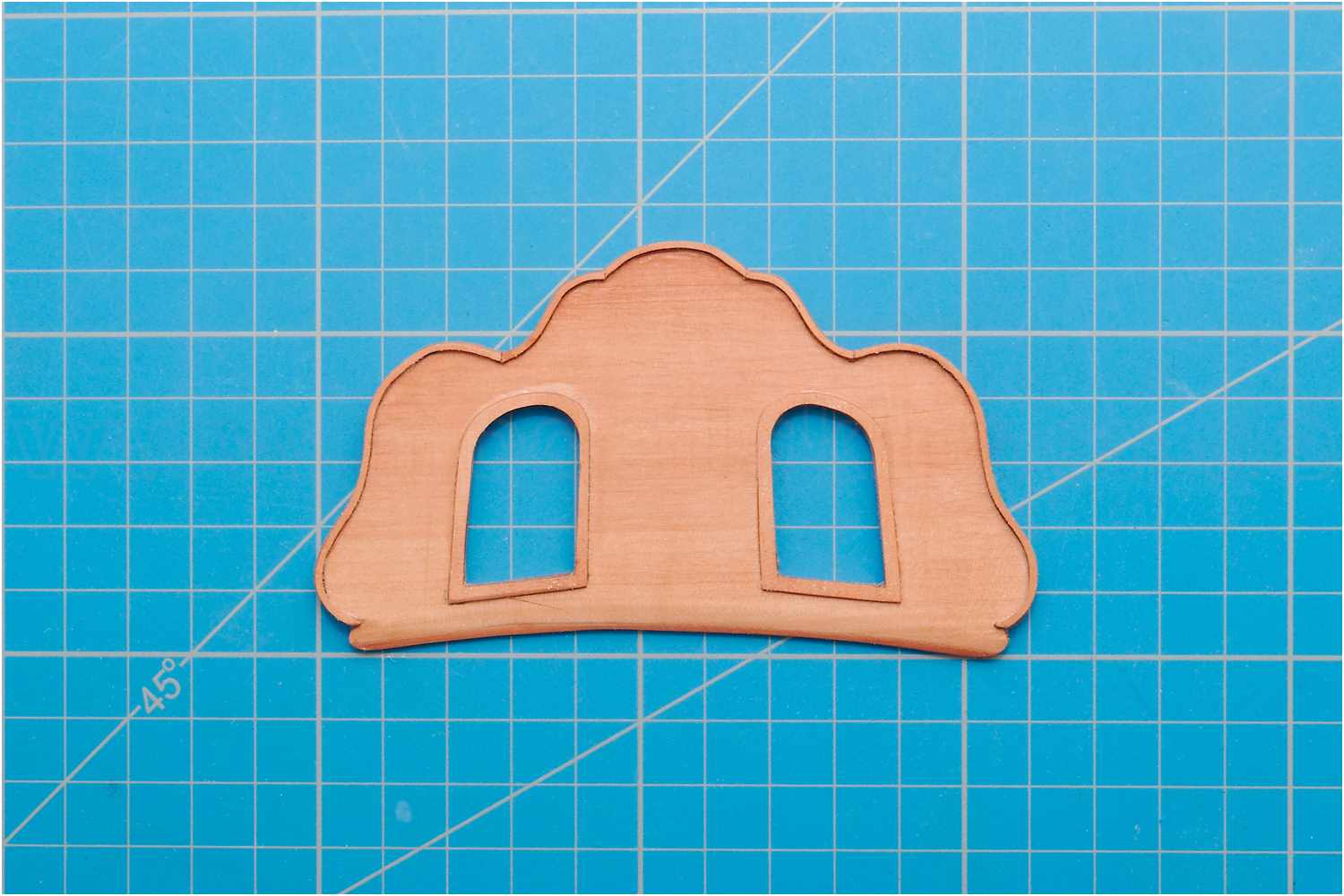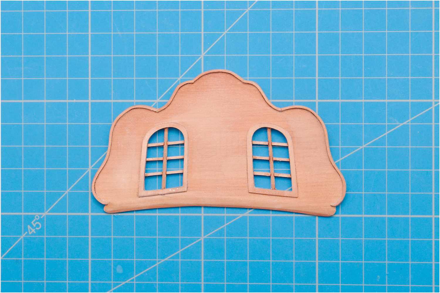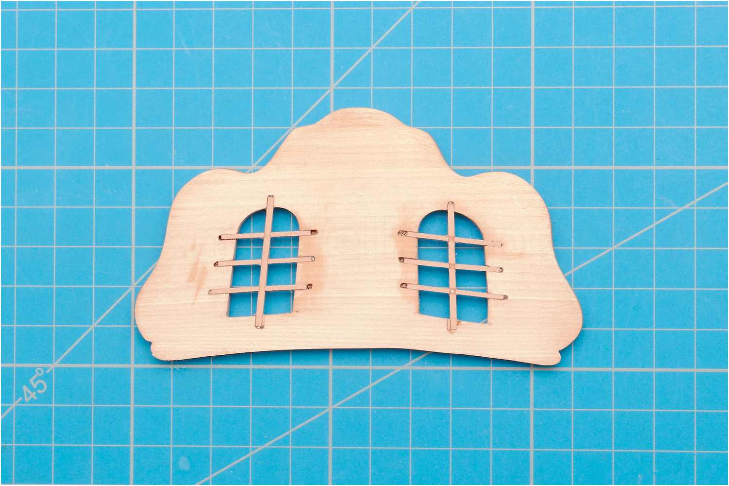Als Nächstes werden die Fensterrahmen und der Kranz an den Außenseiten aufgeklebt.