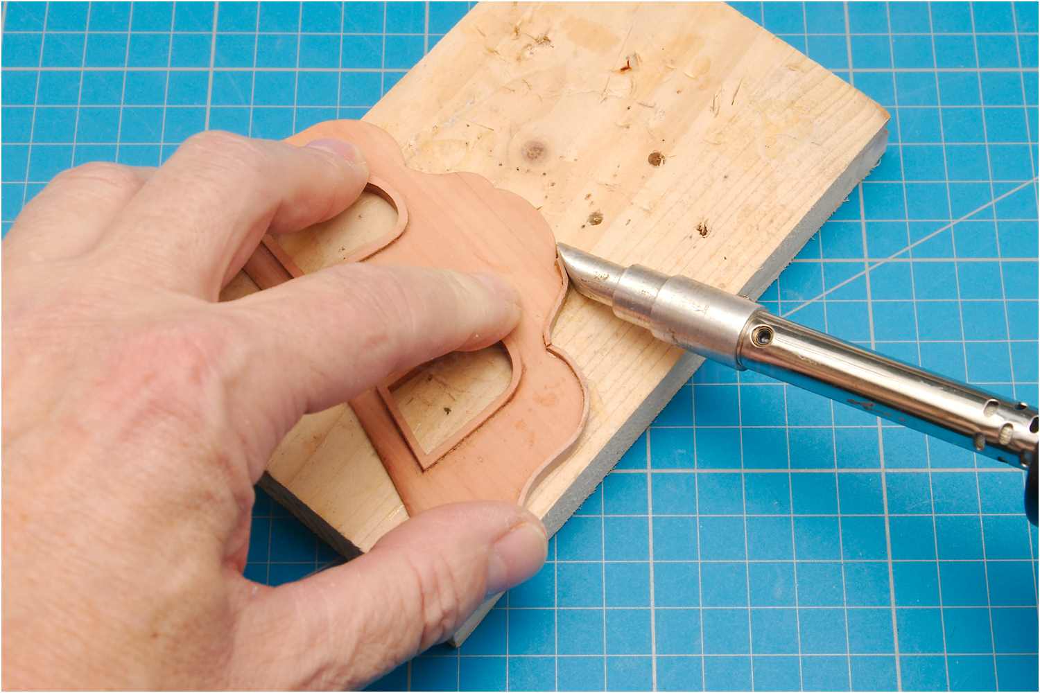Zum Anpassen und Verkleben der Kranzleiste nutze ich einen Lötkolben mit einer Formspitze.
