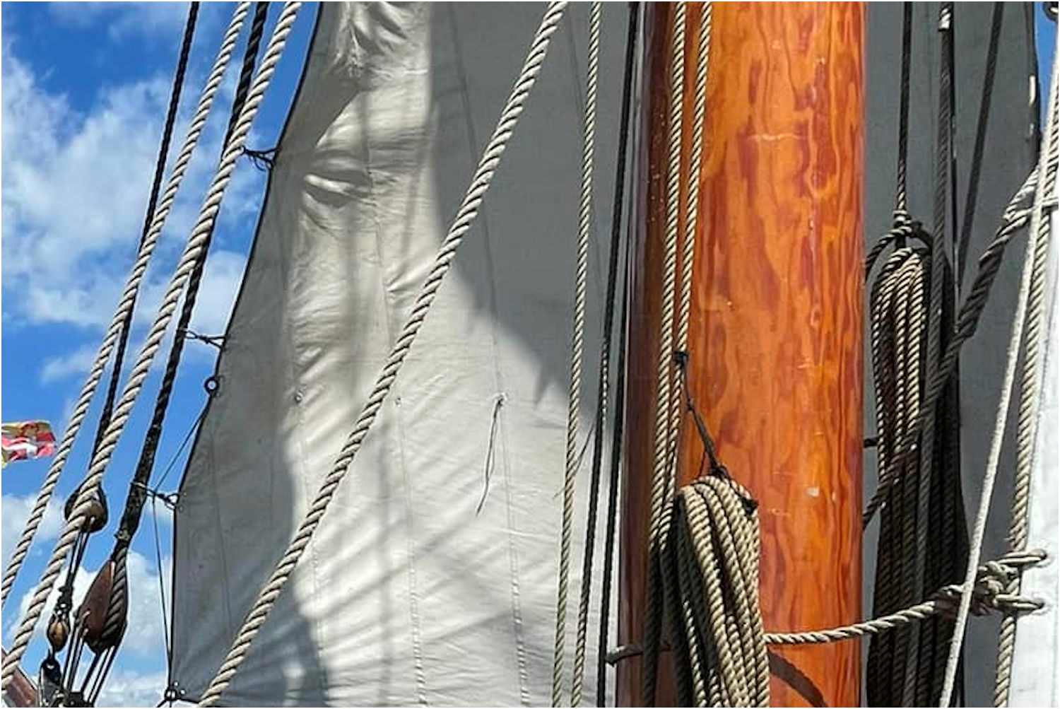 • Reffbändsel am Gaffelsegel (Bild: https://www.facebook.com/Statenjacht)