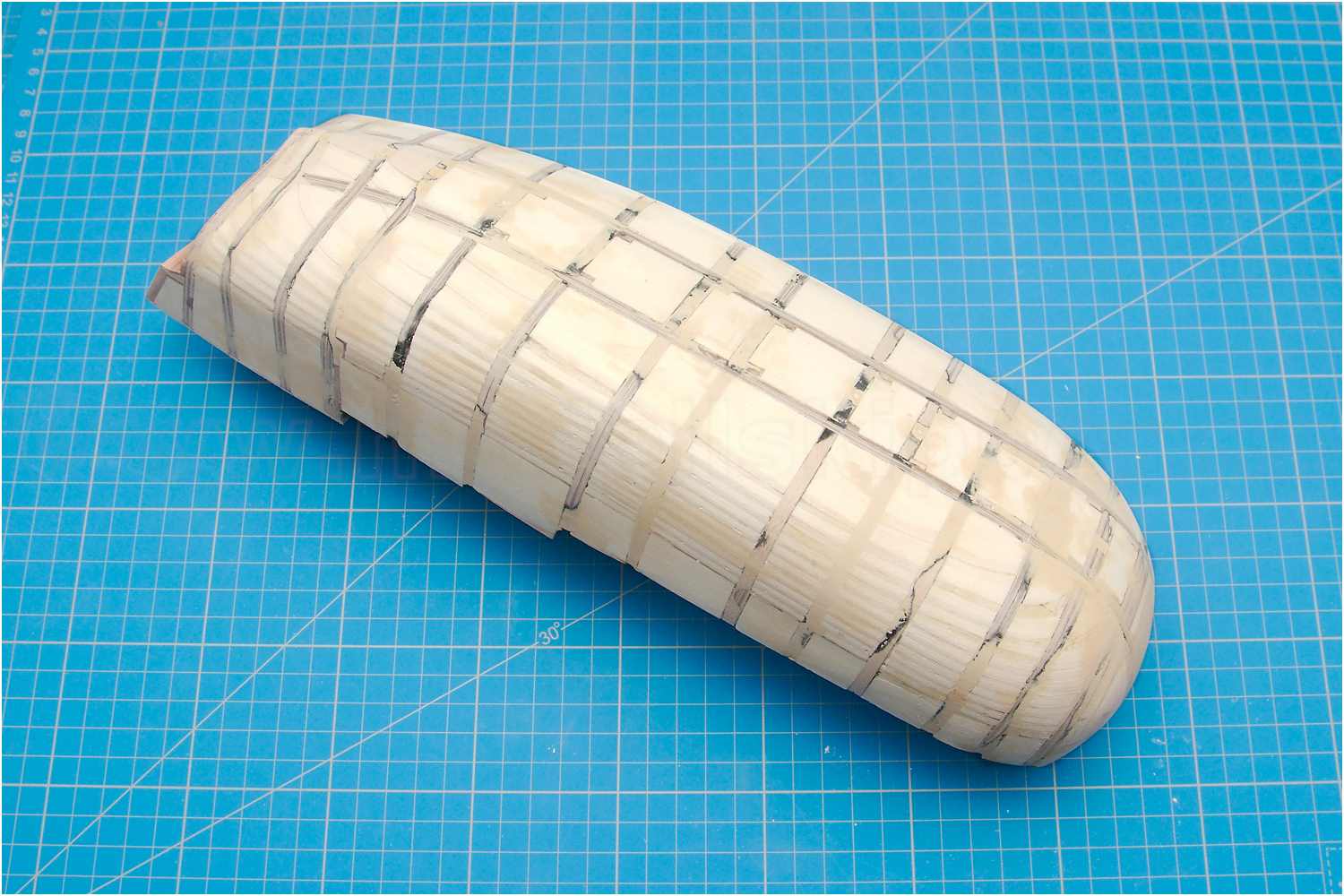 Was vielleicht jedem schon mal passiert ist: bei der ersten Beplankung hat sich der Rumpf resp. Mallen mehr oder weniger verzogen, ein Fehler, der später kaum zu korrigieren ist.